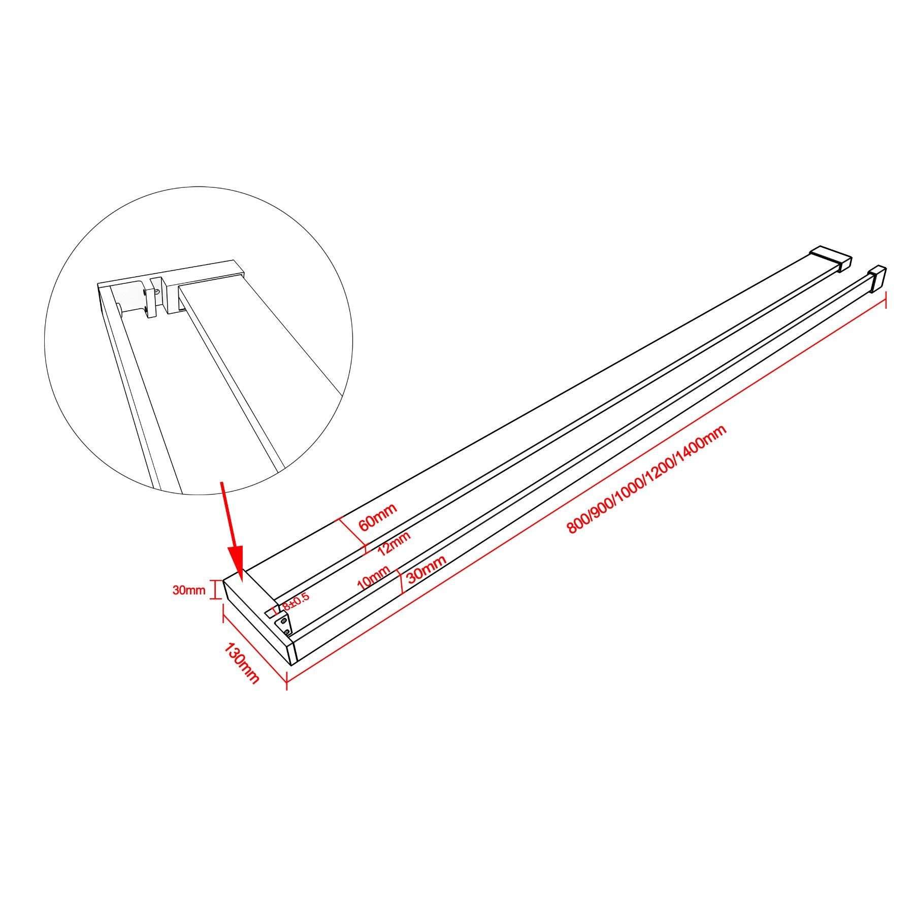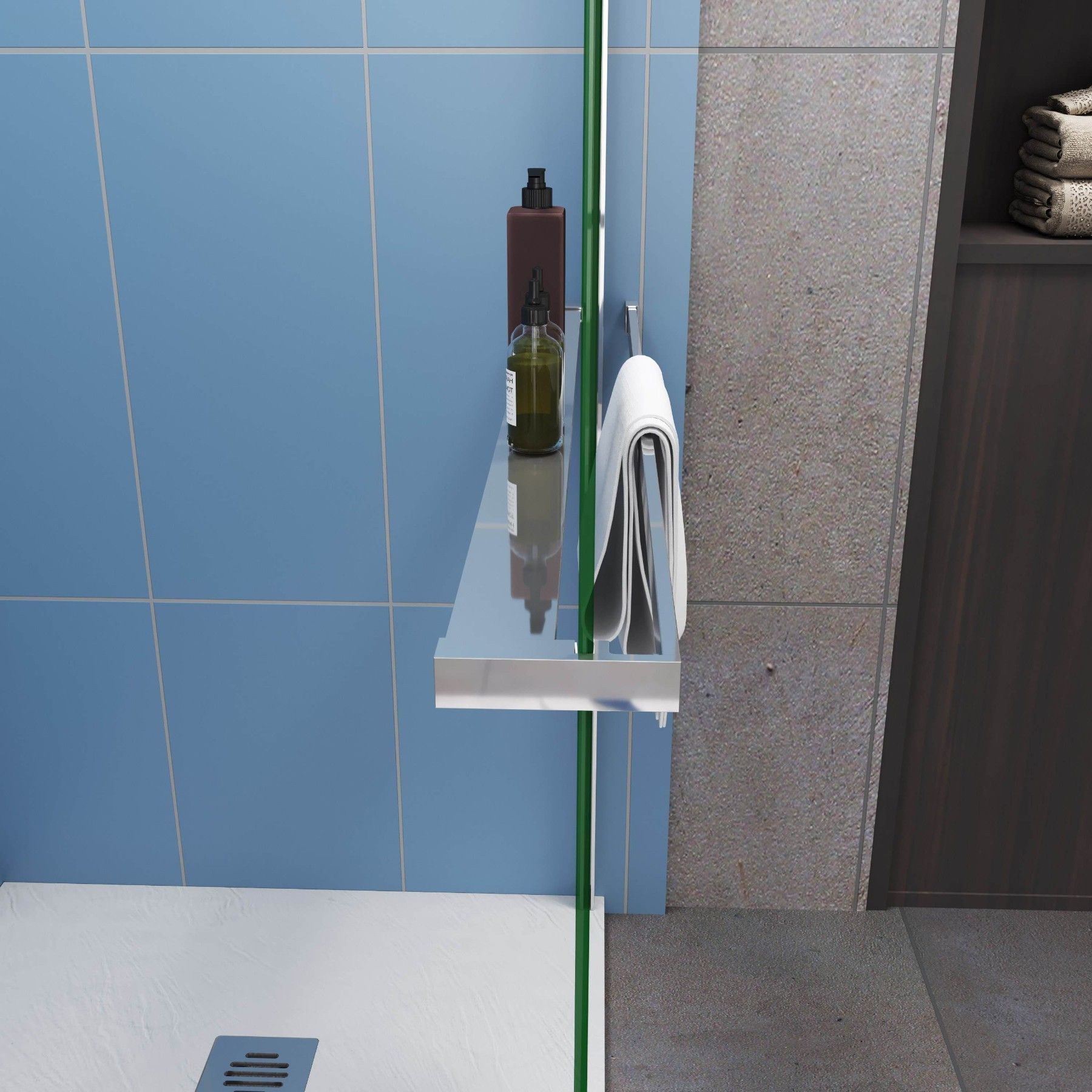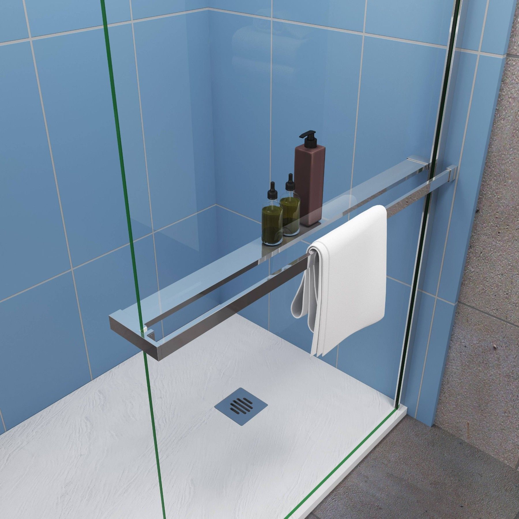 AICA Walk in 100x200cm Duschwand 8mm Glas mit Duschregal mit Stabilisator F130