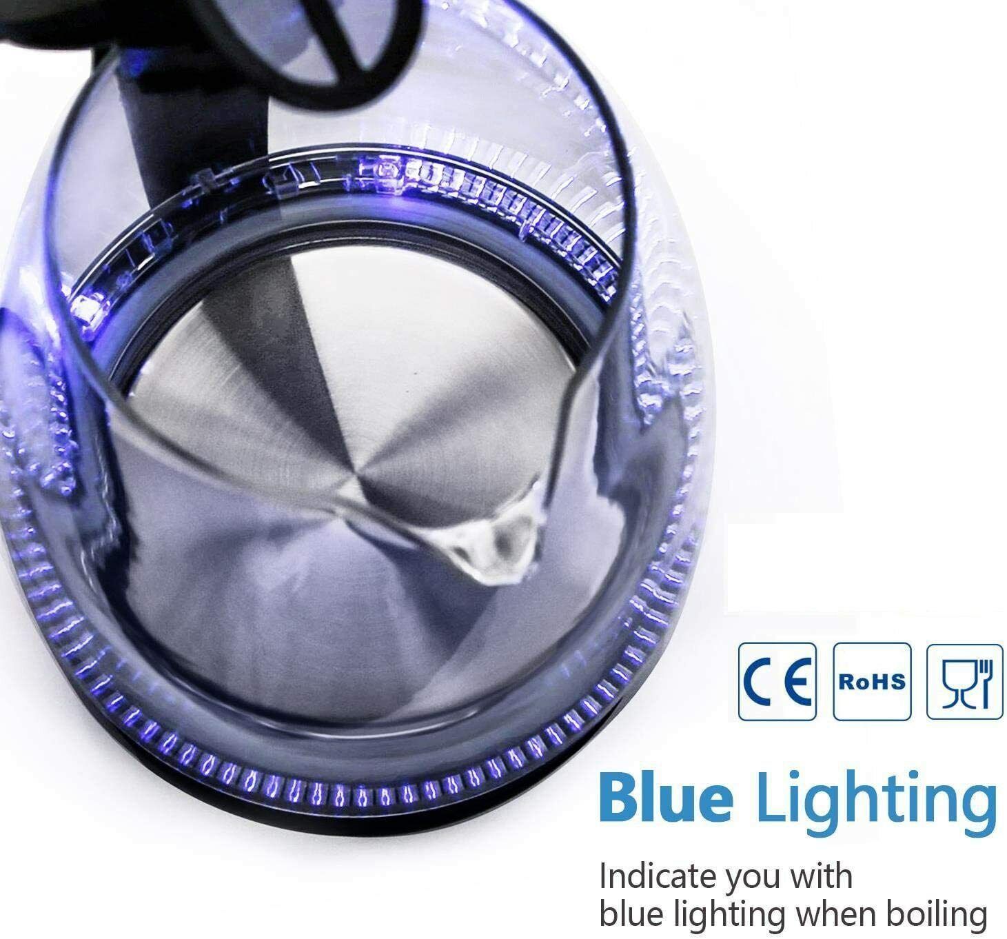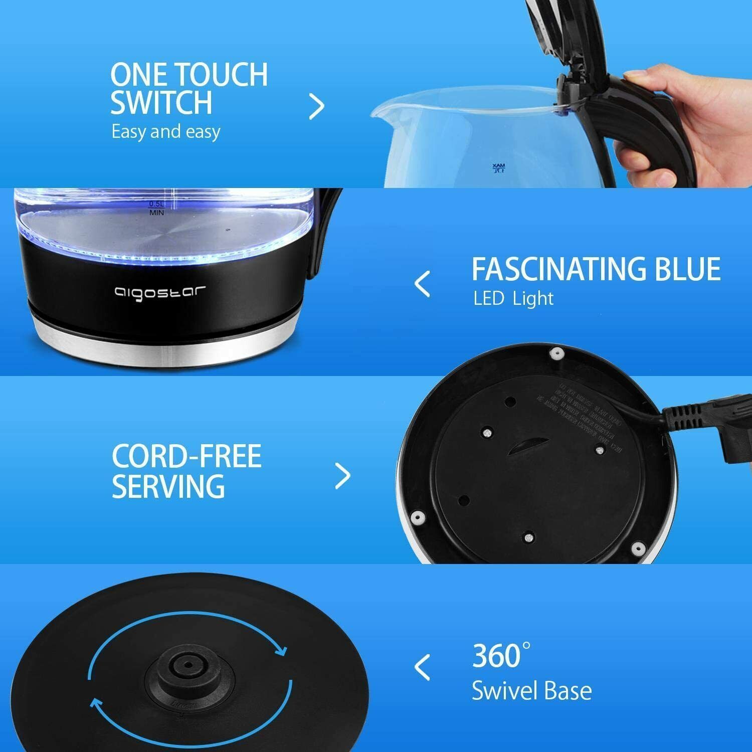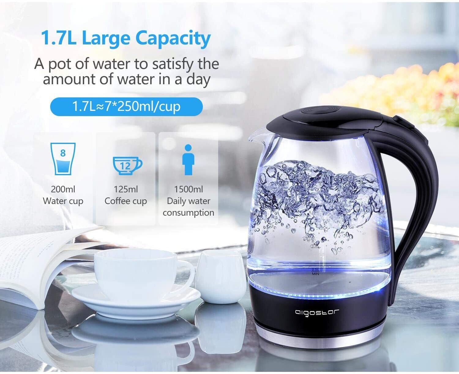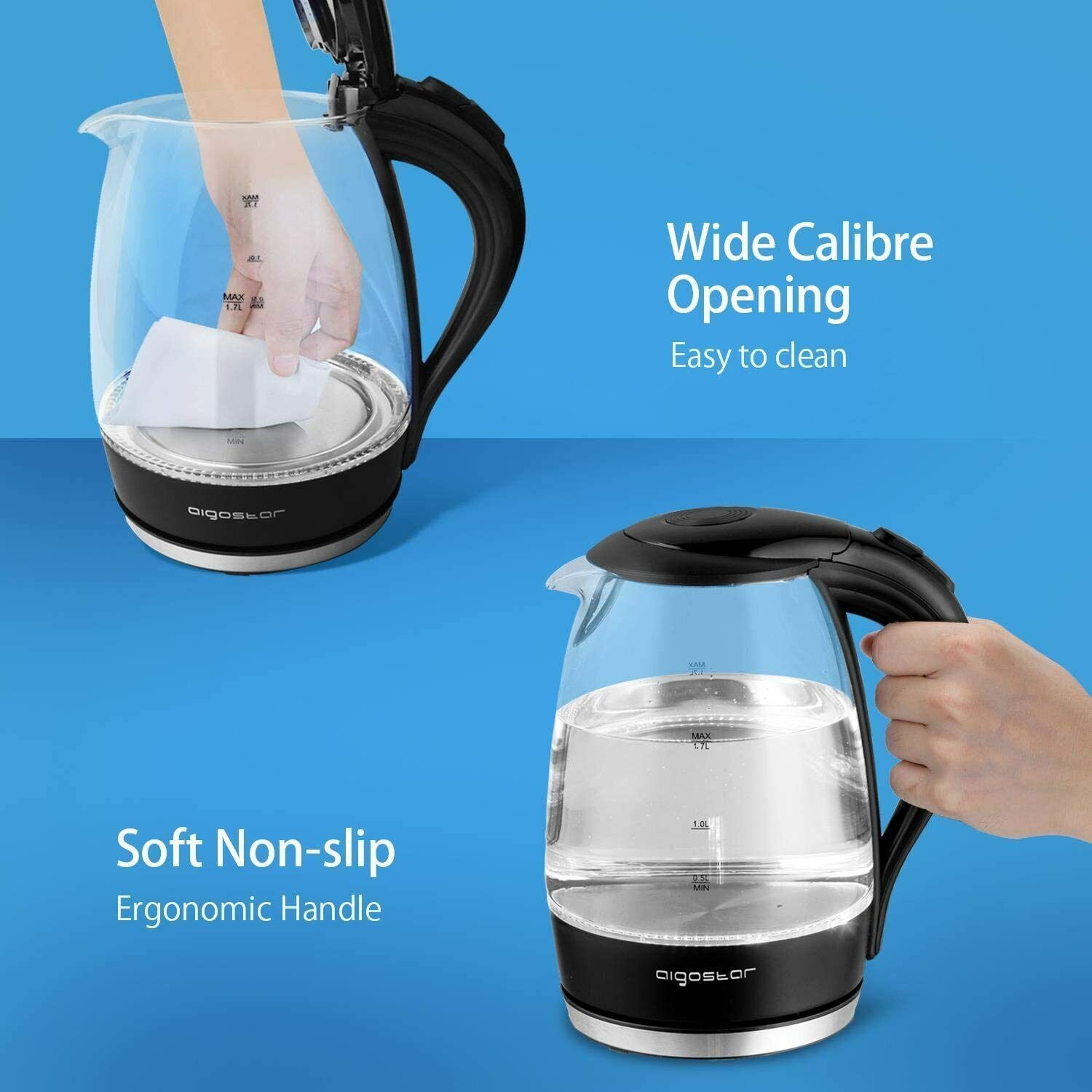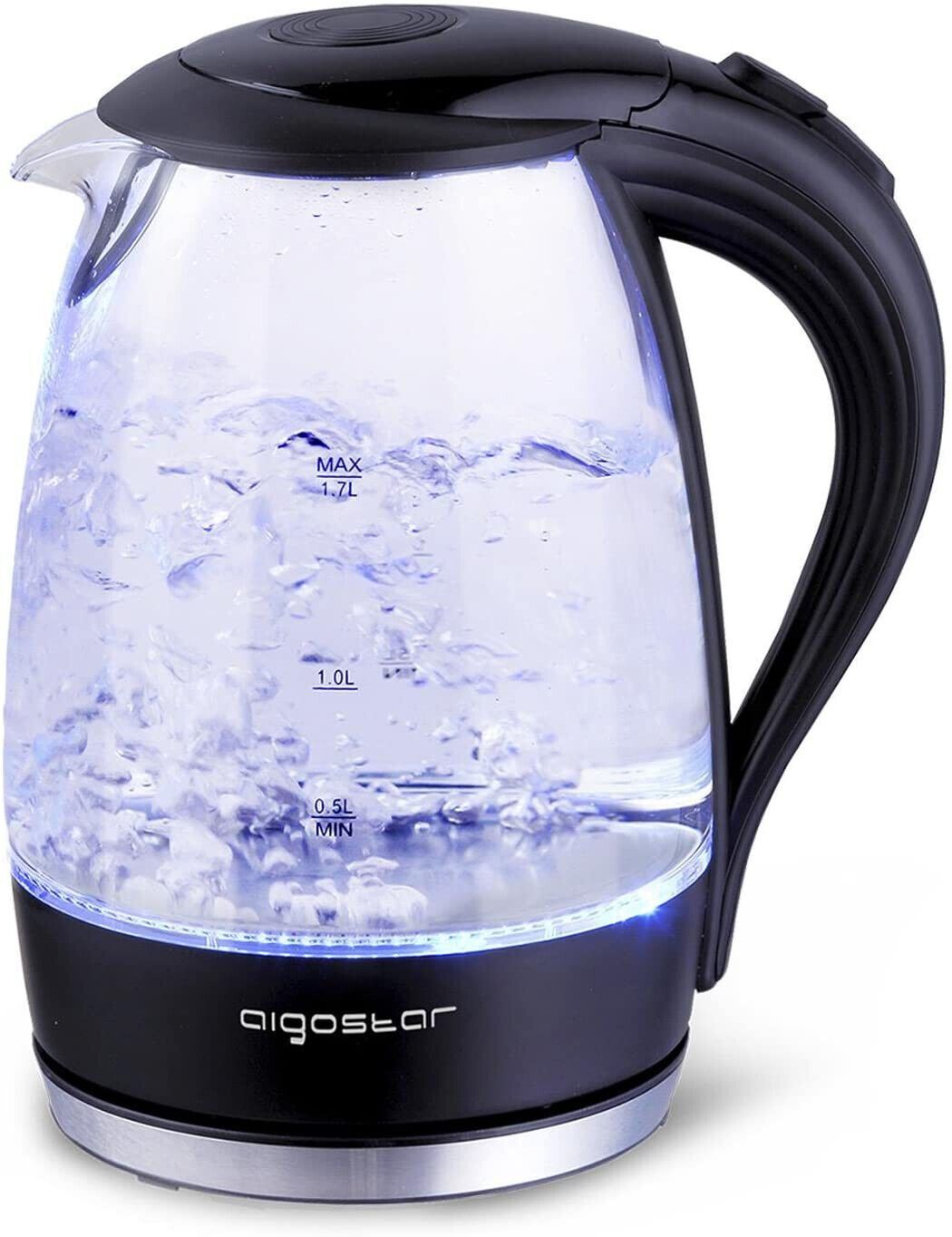 Aigostar Adam Glas Wasserkocher LED-Beleuchtung 1.7 Liter Edelstahl 2200 Watt