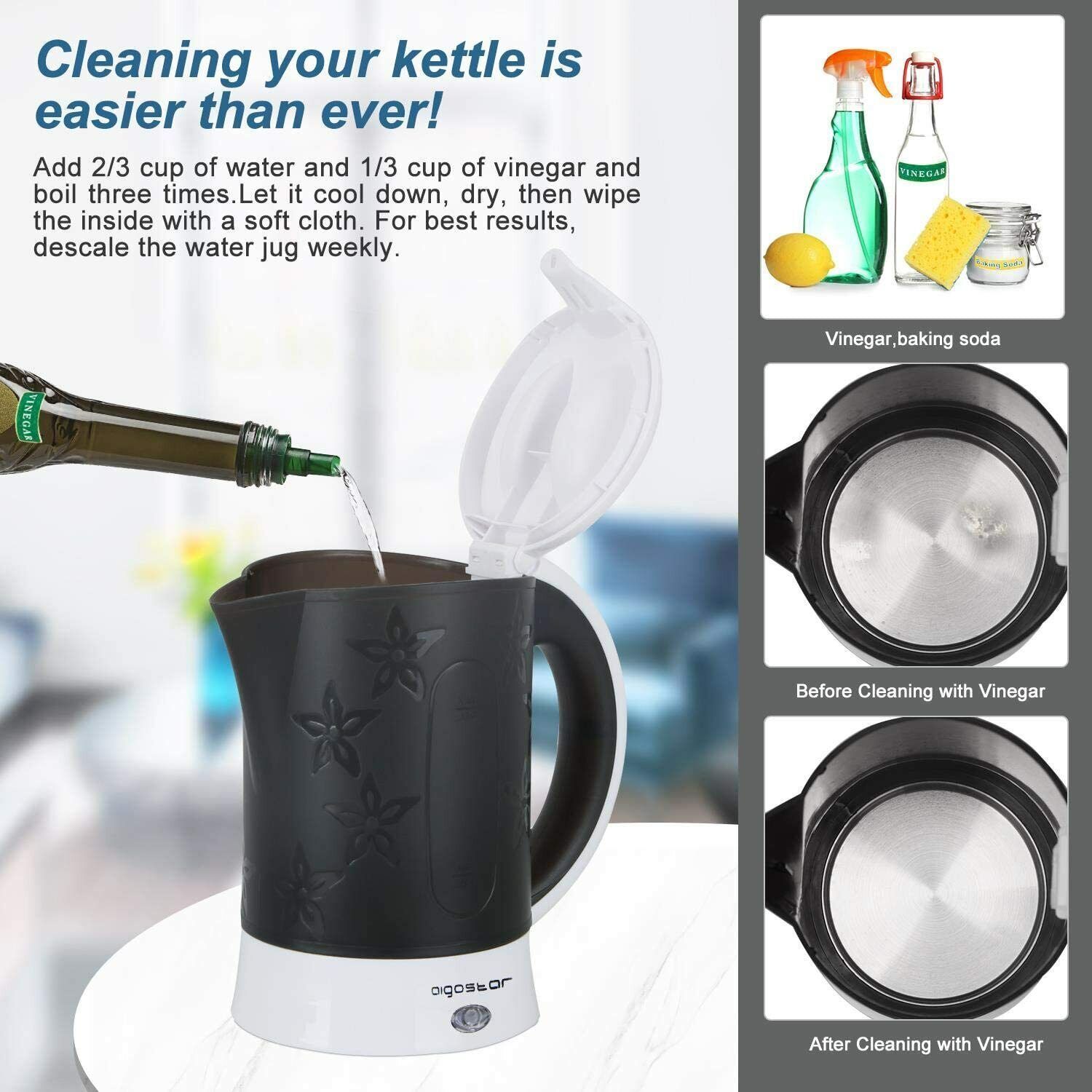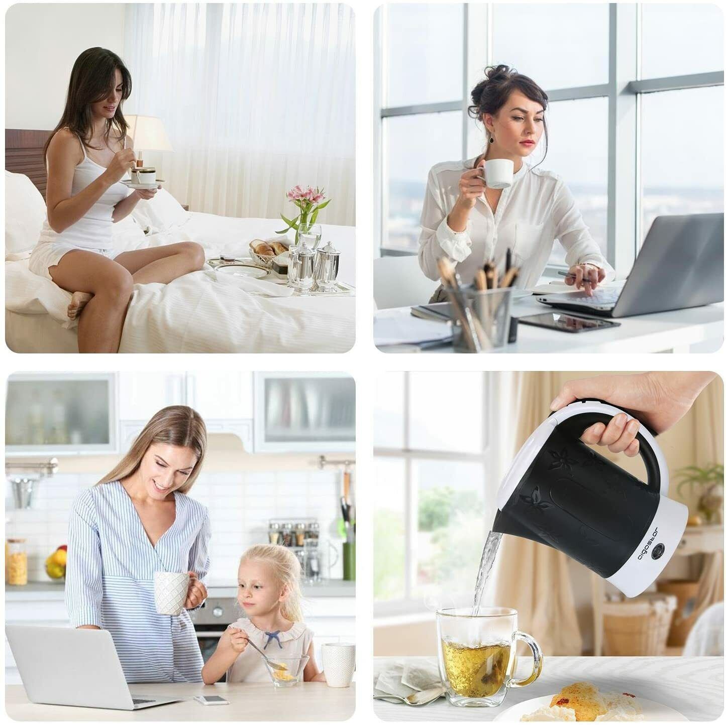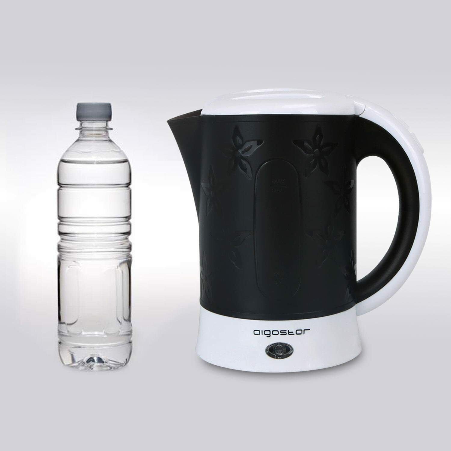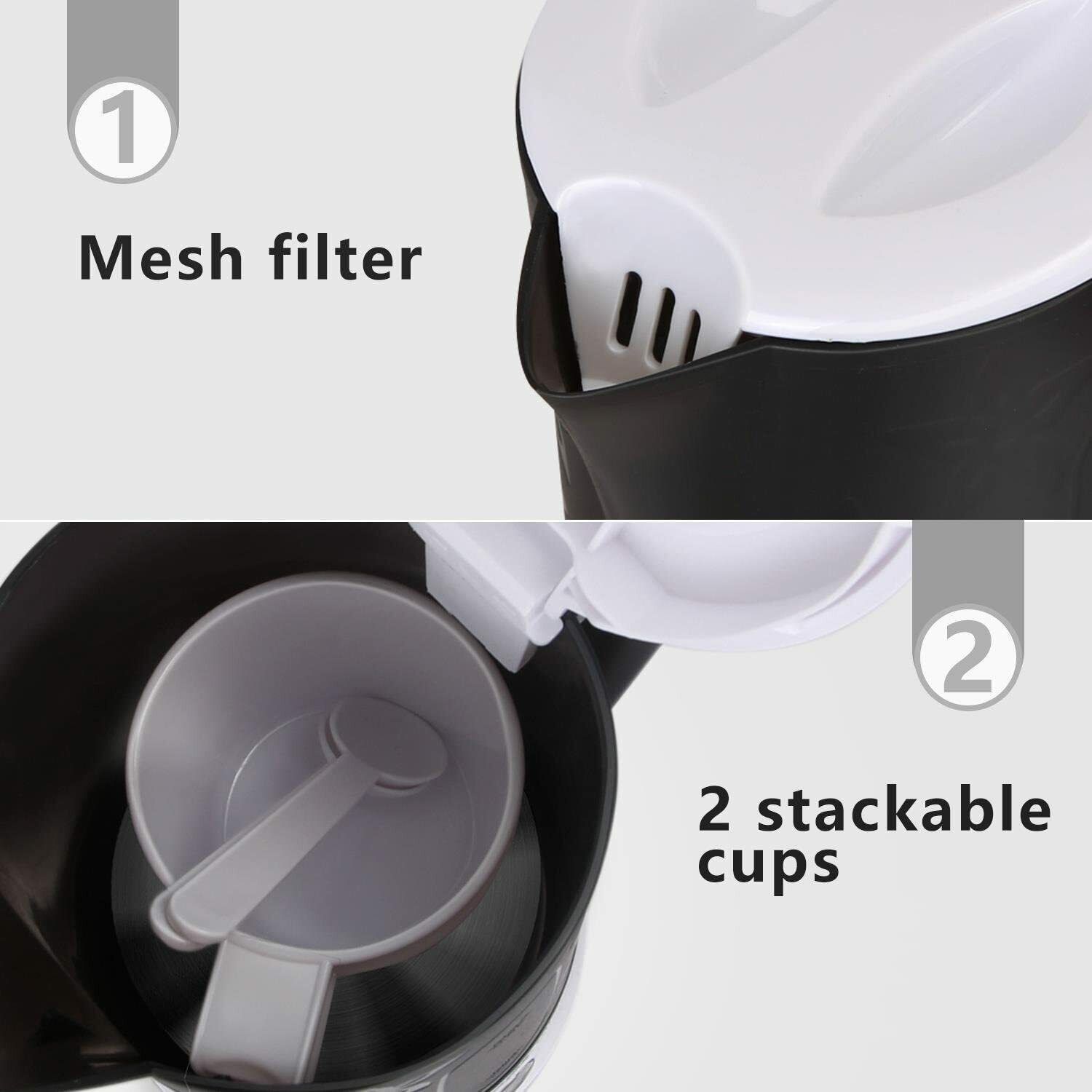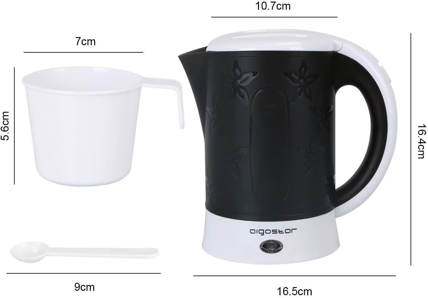 Aigostar Reise-Wasserkocher Set 0,6 Liter 650 Watt 2 Tassen 2 Teelöffel Schwarz
