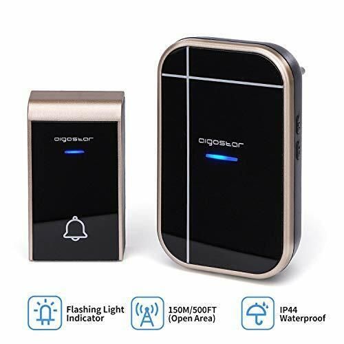 Aigostar Tragbares Funkklingel Set Térklingel Kabellos 36 Melodien IP44 Schwarz