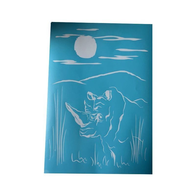 Airbrush Klebeschablone Schablonen Set Rhinozeros Arts Bild A4 Mask blau transparent