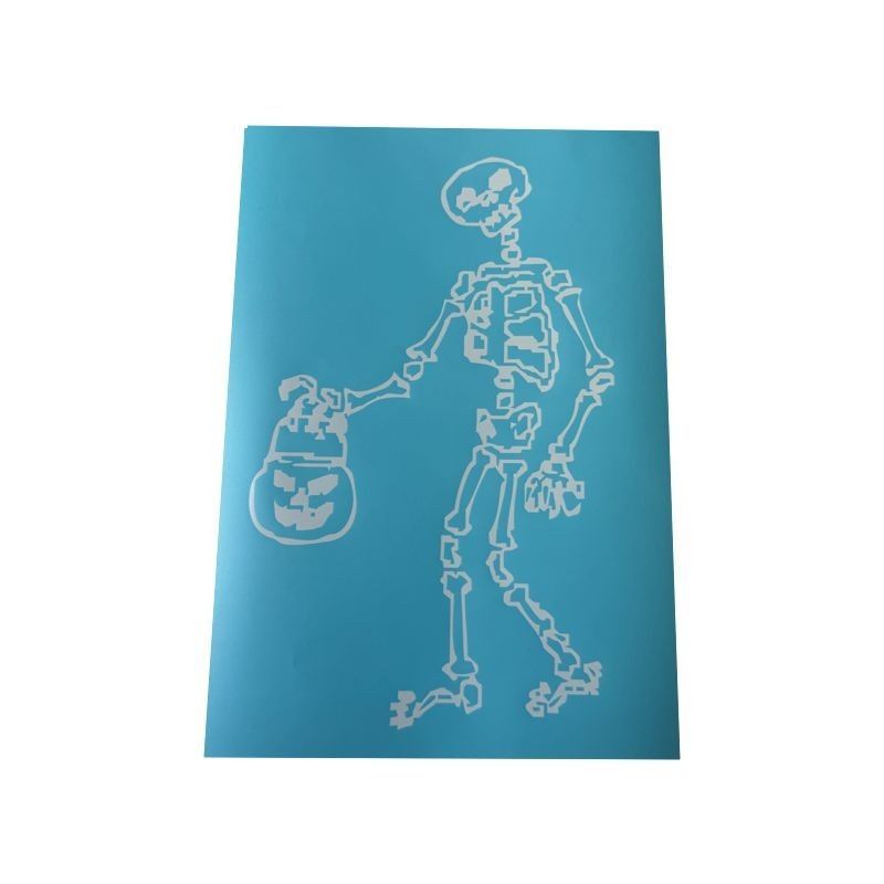 Airbrush Klebeschablonen Helloween Set 2 Skelett Stencil Sign Mask blau transparent