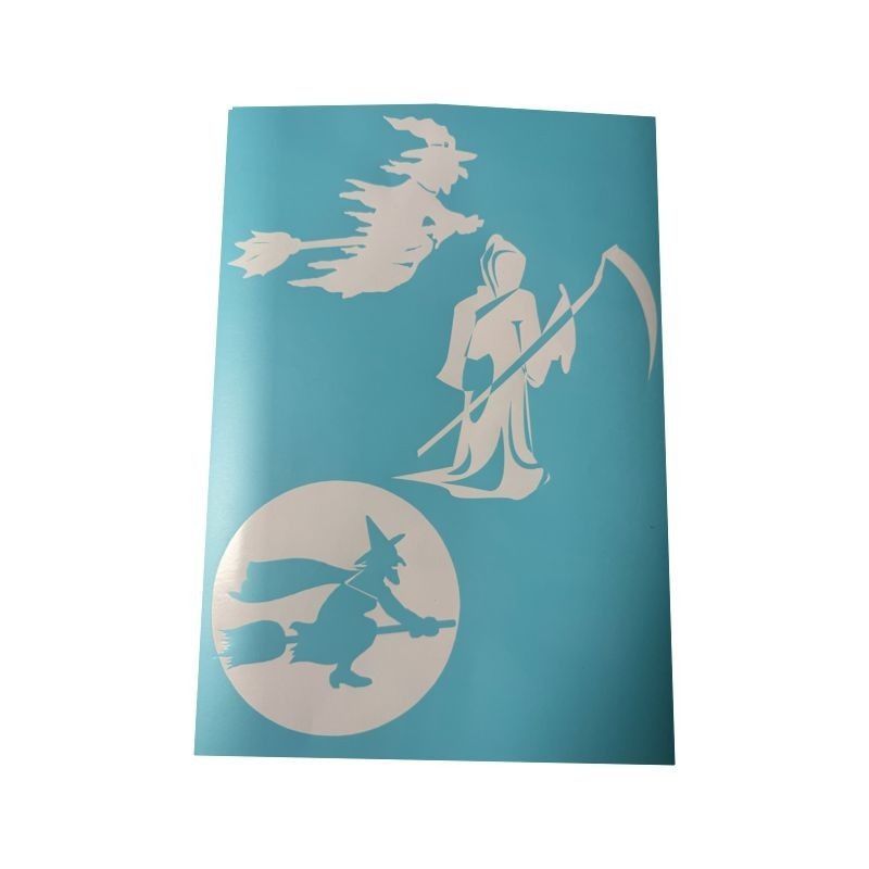 Airbrush Klebeschablonen Helloween Set 6 Sensenmann Hexen Stencil Sign Mask blau transparent