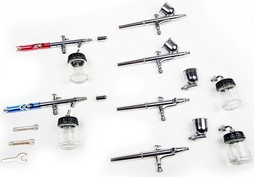 Airbrush Pistolen 6er SET 0,3mm 0,35mm Düsen 7&22CC Becher1/8 BSP Spritzpistole
