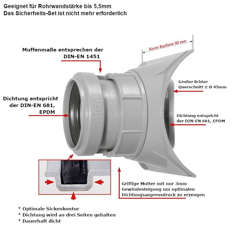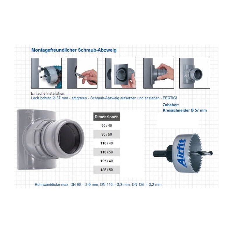 AIRFIT PP Schraubabzweig kurze Bauform DN40 - DN125 dauerhaft dicht ohne Kleben