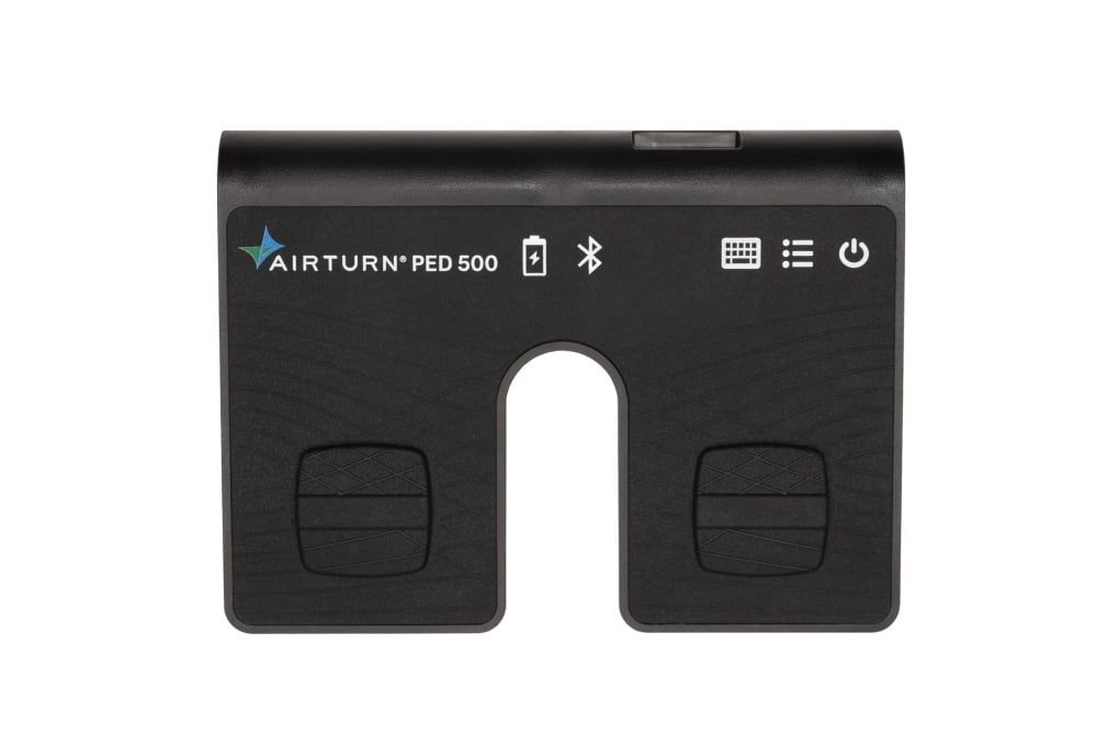 Airturn PED 500 Kabelloser Page Turner zum Umblättern digitaler Inhalte (z.B. Noten, eBooks, Präsentationsprogramme etc.) für Mac, PC, iPad oder Android-Tablet mit Bluetooth 4 oder höher flache Bauweise mit 18 mm Höhe rutschfestes Oberflächen-Design LED-Anzeige für Batteriesatus und Bluetooth-Verbin