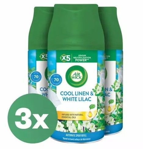 AirWick Freshmatic Refills- 3x250ml - Air Wick Freshmatic - Frische und Ruhe in Ihrem Zuhause Euro Mit dem Air Wick Freshmatic Refill können Sie den erfrischenden und beruhigenden Duft zu 70 Tage lang in Ihrem Zuhause genießen. Dieser 3x250 ml Spender ist die ideale Wahl, um eine konstant angenehme