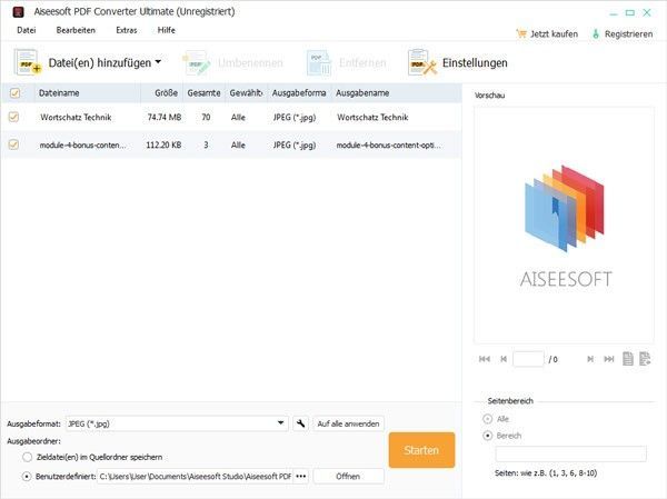 DOWNLOAD VERSION - KEIN POSTVERSAND LIEFERUNG PER E-MAIL INNERHALB VON 30 - 60 MINUTEN Aiseesoft PDF Converter Ultimate PDF in verschiedene Dokument- und Bildformate umwandeln Batch-Konvertierung der PDF-Dateien PDF in Word Text Excel PPT konvertieren Aiseesoft PDF Converter Ultimate ist ein leistun