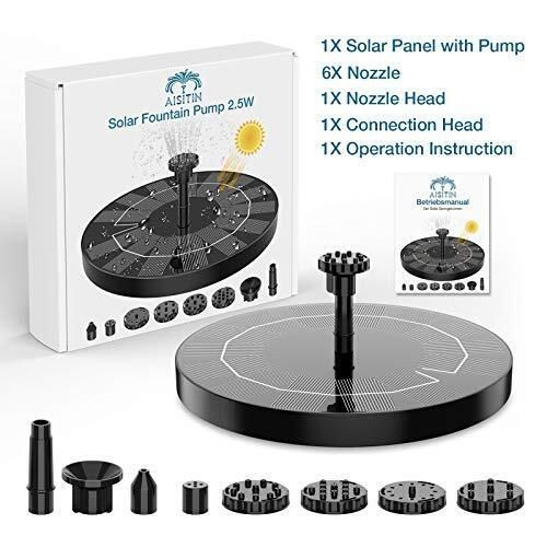 Aisitin Solar Springbrunnen Solarbrunnen Teichpumpe Teich Garten 2,5 Watt 160 mm