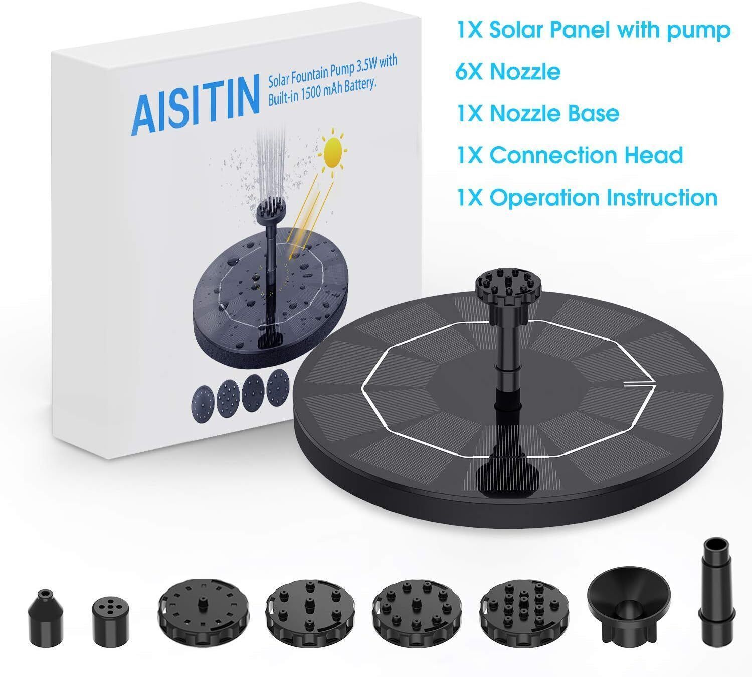 Aisitin Solar Springbrunnen Teichpumpe 6 Fontänenstile Garten Teich 3,5 Watt