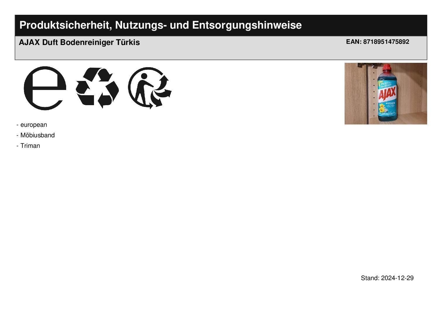 AJAX Duft Bodenreiniger Türkis
