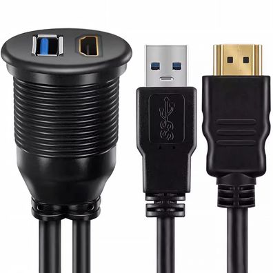 • L38C USB 3.0 A + HDMI Verlängerungskabel Panel-Mount Auto Armaturenbrett 100cm
