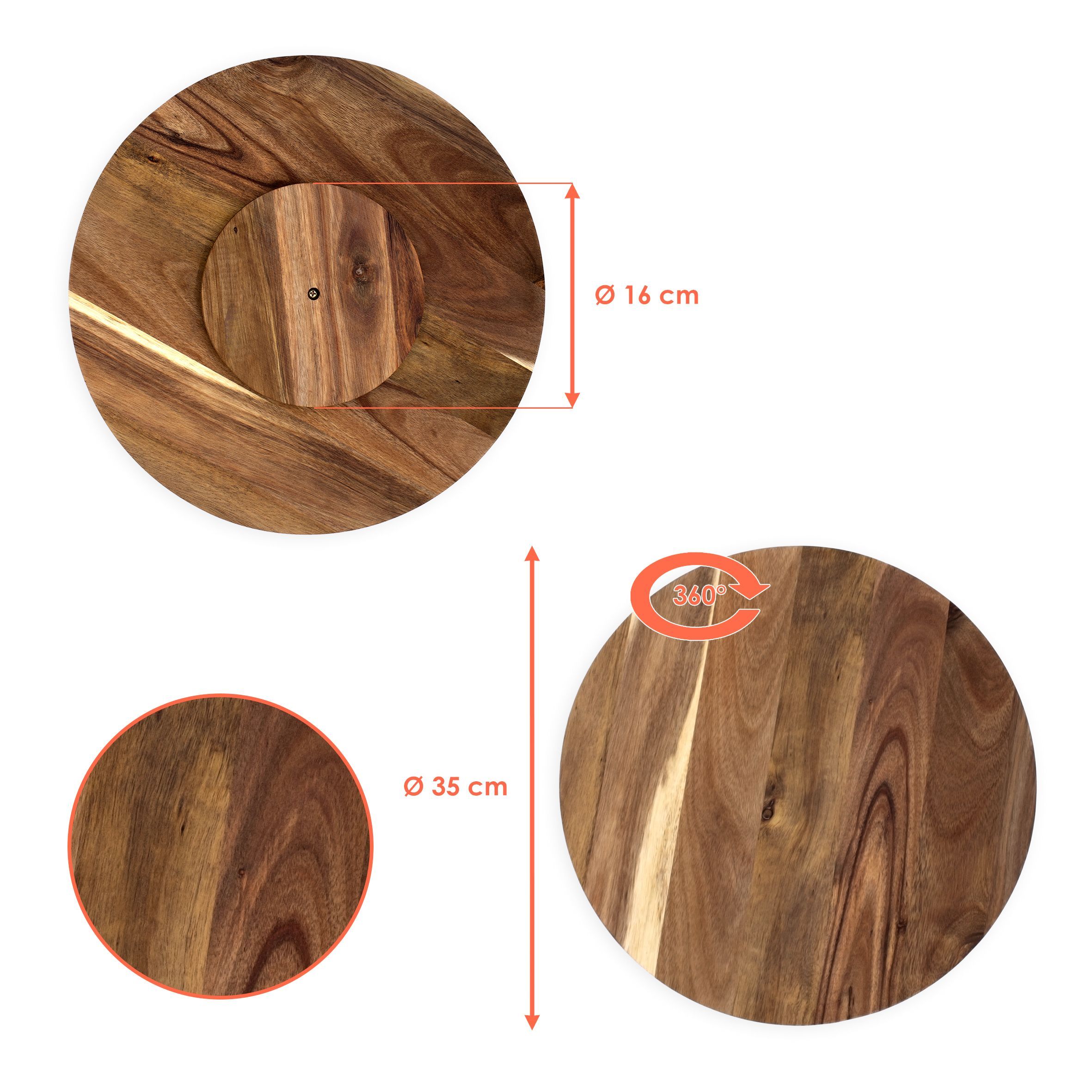 Akazie Drehteller rund natur - Ø 35 cm - Holz Servierplatte um 360° drehbar Drehbarer Holz Servierteller aus Akazienholz mit ca. 35 cm Durchmesser Artikeldaten: Die Größe beträgt ca. 35 cm x 2,5 cm (Durchmesser x Höhe) Material: Akazie Farbe: natur Servierplatte um 360° drehbar zum An