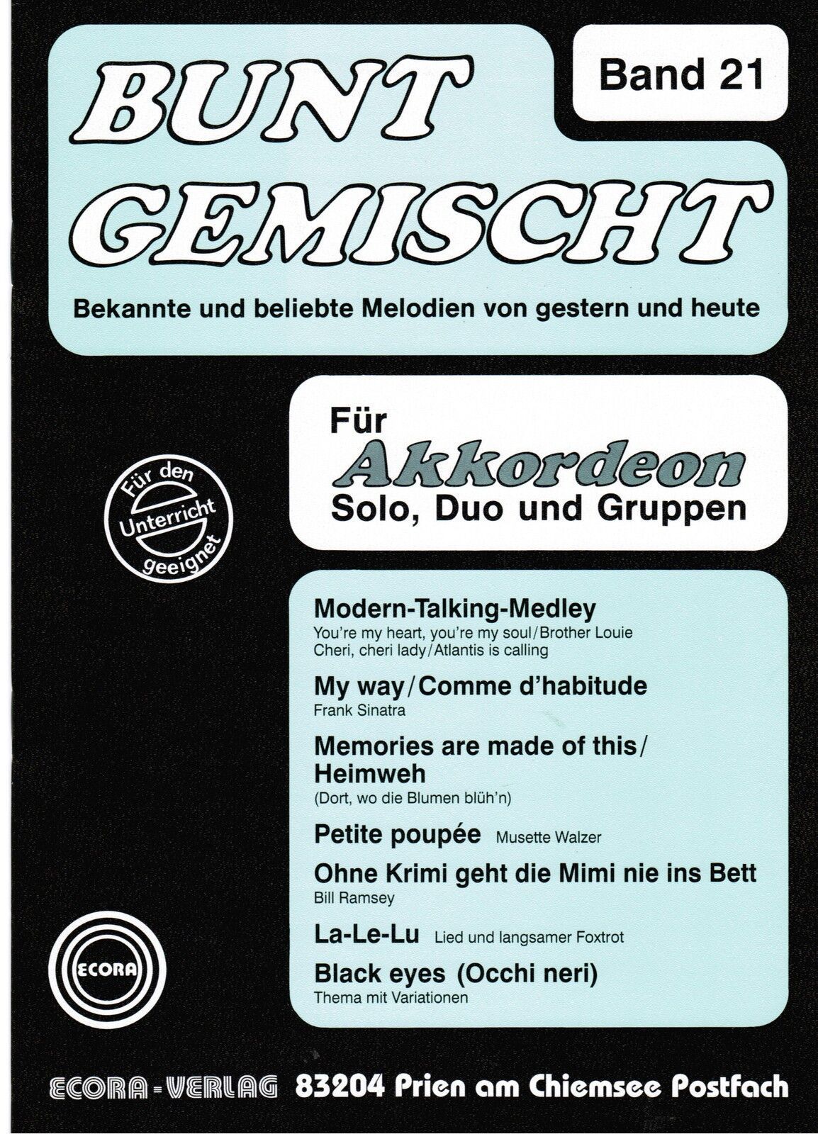 Akkordeon Noten : Bunt gemischt 21 leichte Mittelstufe - mittel m. 2. St. ad lib