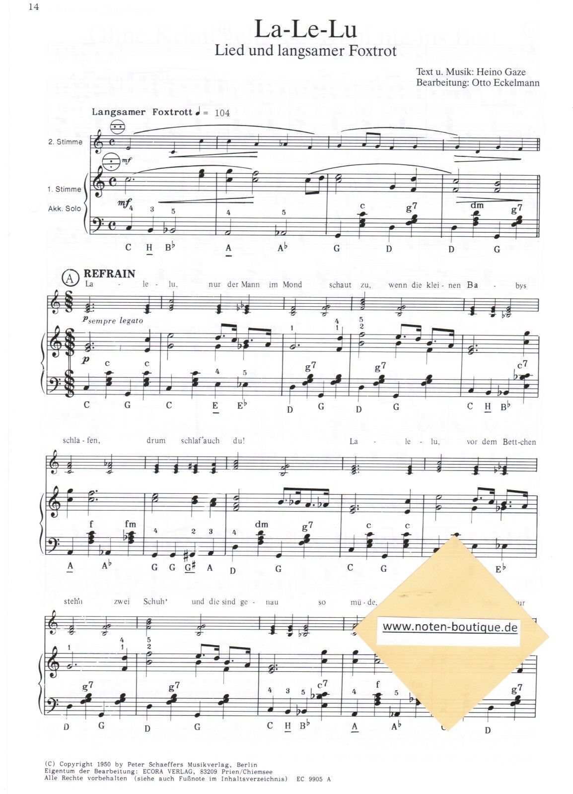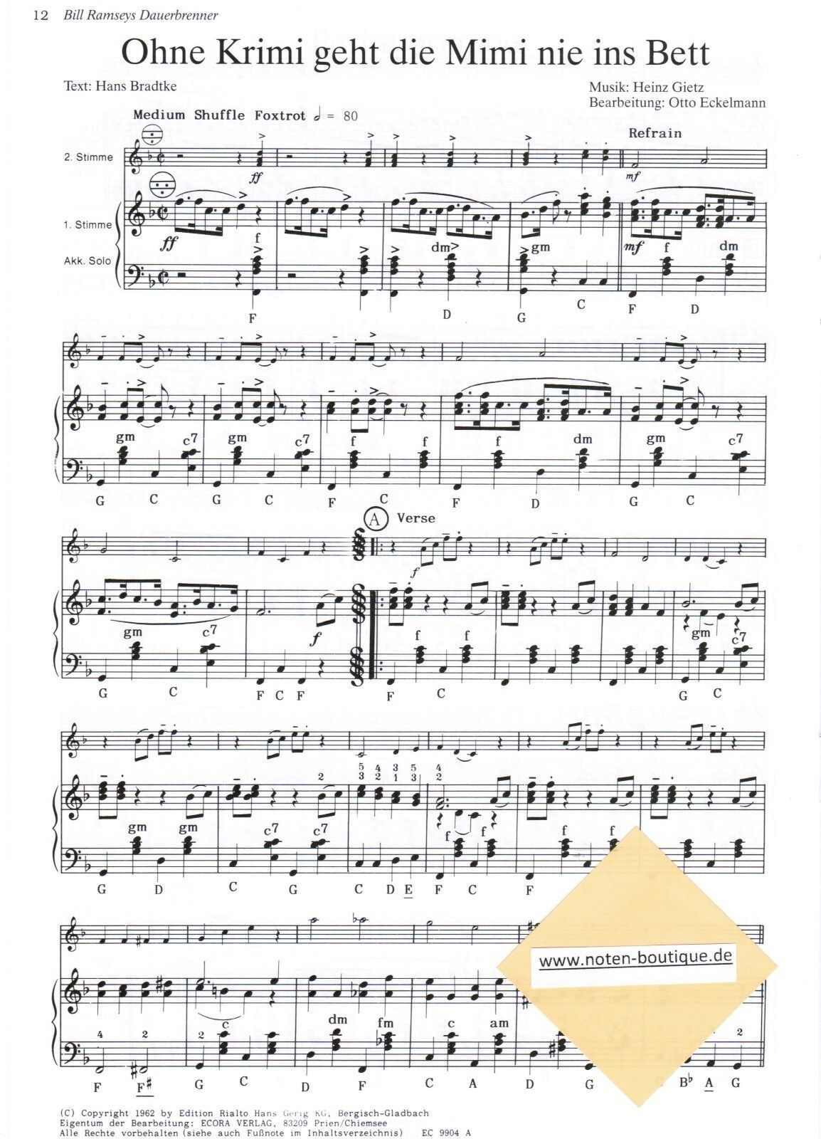 Bunt gemischt Heft 21 Bekannte und beliebte Melodien von gestern und heute Ausgabe für Akkordeon mit überlegter 2. Stimme für Akkordeon-Duo (ad.lib.) Verlag : Ecora Verlag Seitenanzahl: 17 Zustand: NEUWARE Schwierigkeitsgrad : mittelschwer (meine pers. Einschätzung) Inhalt: Mordern-Talking-Medley (Y