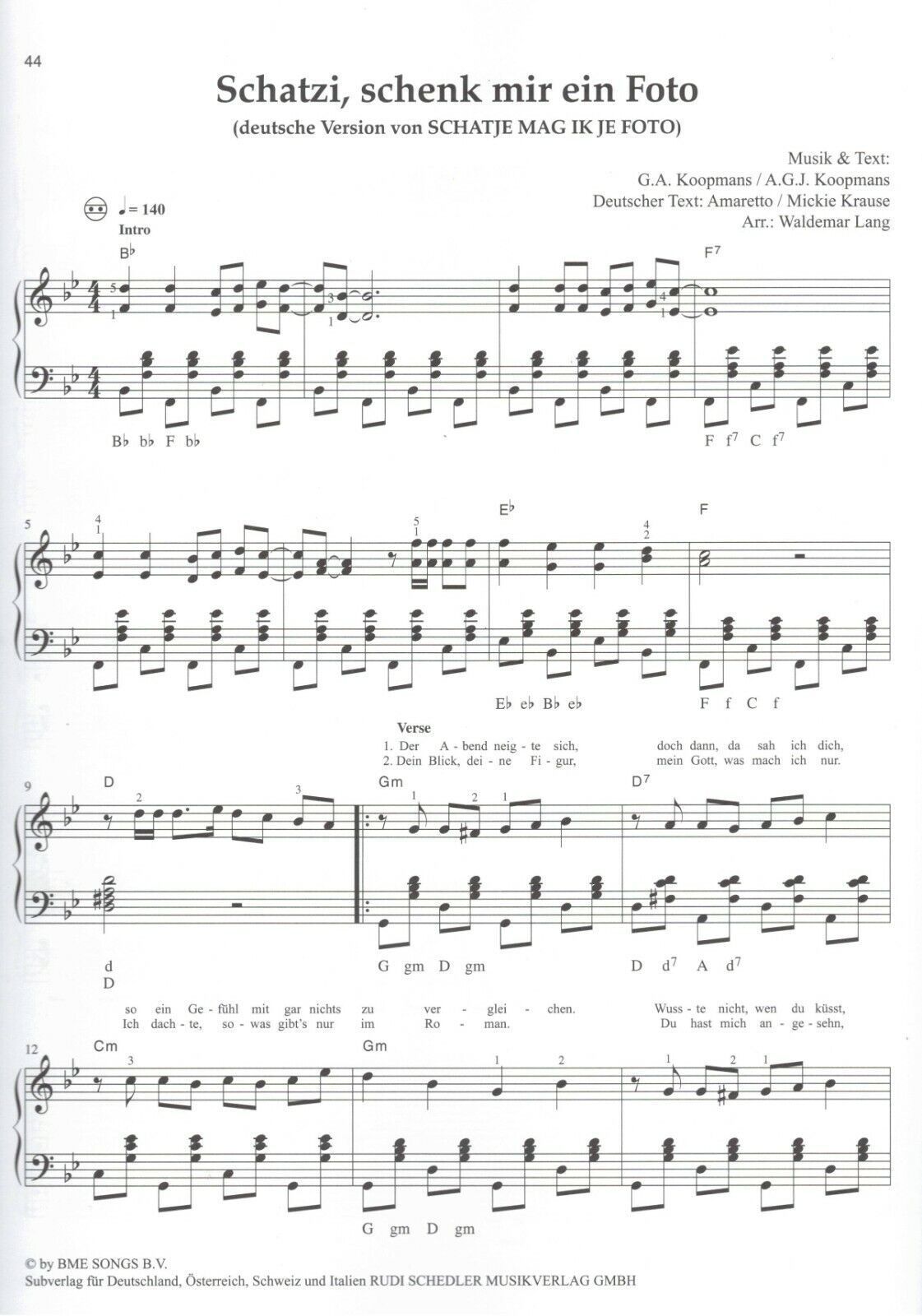 Feten Hits Akkordeon Noten herausgegeben von Waldemar Lang Verlag : Holzschuh-Verlag VHR 1868 Seitenanzahl: 48 Seiten Zustand: NEUWARE Schwierigkeitsgrad : leichte Mittelstufe - mittelschwer (meine pers. Einschätzung) Inhalt: Amsterdam Auf uns Bella ciao Brenna tuats guat Cordula Grün Heid Hey Baby