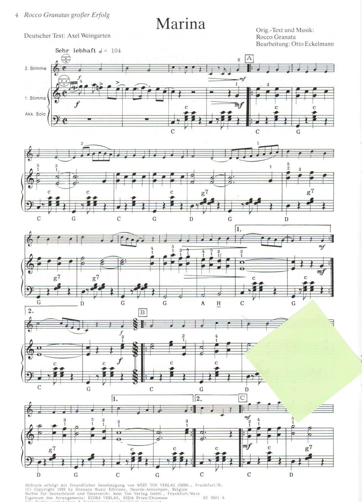 Golden Oldies Heft 5 Ausgabe für Akkordeon mit 2. Stimme für Akkordeon-Duo (ad. lib.) die 2. Stimme liegt nicht separat bei, sondern ist der 1. Stimme als separate Notenzeile überlegt. (auch für andere Tasteninstrumente geeignet) Verlag : Ecora Verlag Nr. 1026 Seitenanzahl: 24 Zustand: NEUWARE Schwi
