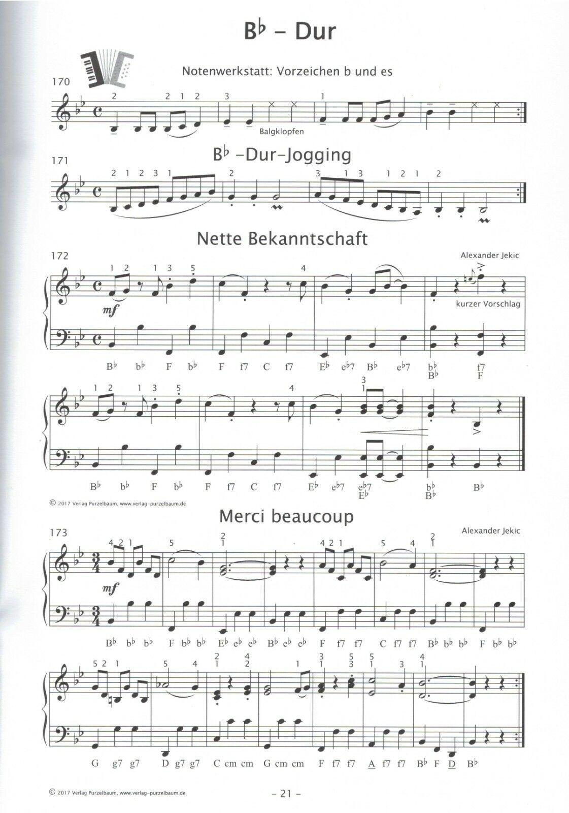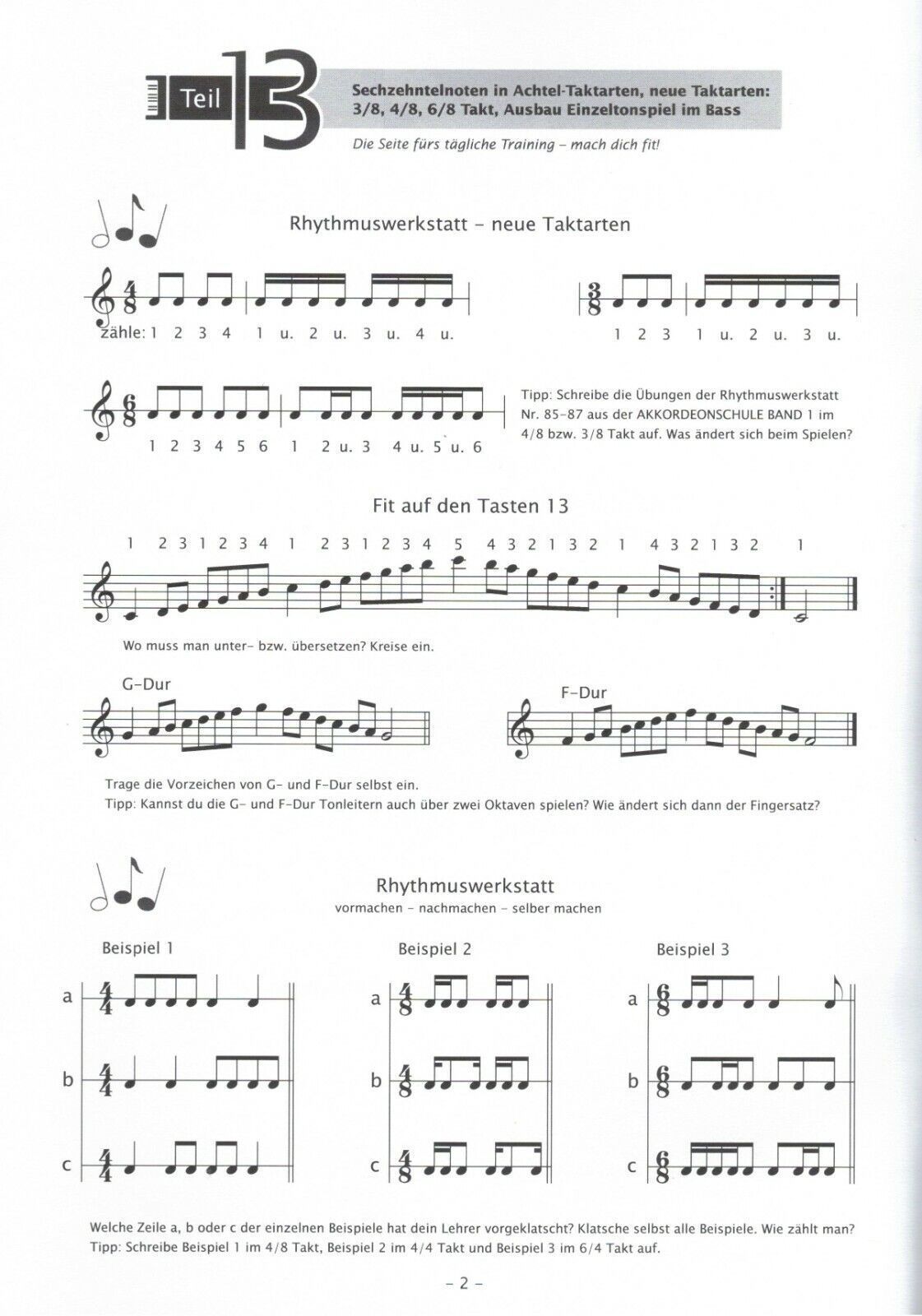 Akkordeon Schule Band 3 von Christina Fischer-Fahs & Alexander Jekic Methodisches Lernkonzept Gratisnoten zum Download Hörproben auf YouTube Verlag : PURZELBAUM VERLAG 20003 Seitenanzahl: 44 Zustand: NEUWARE Schwierigkeitsgrad : Fortgeschrittener - im Anschluss an Band 2 Inhalt: Teil 13 - Sechze