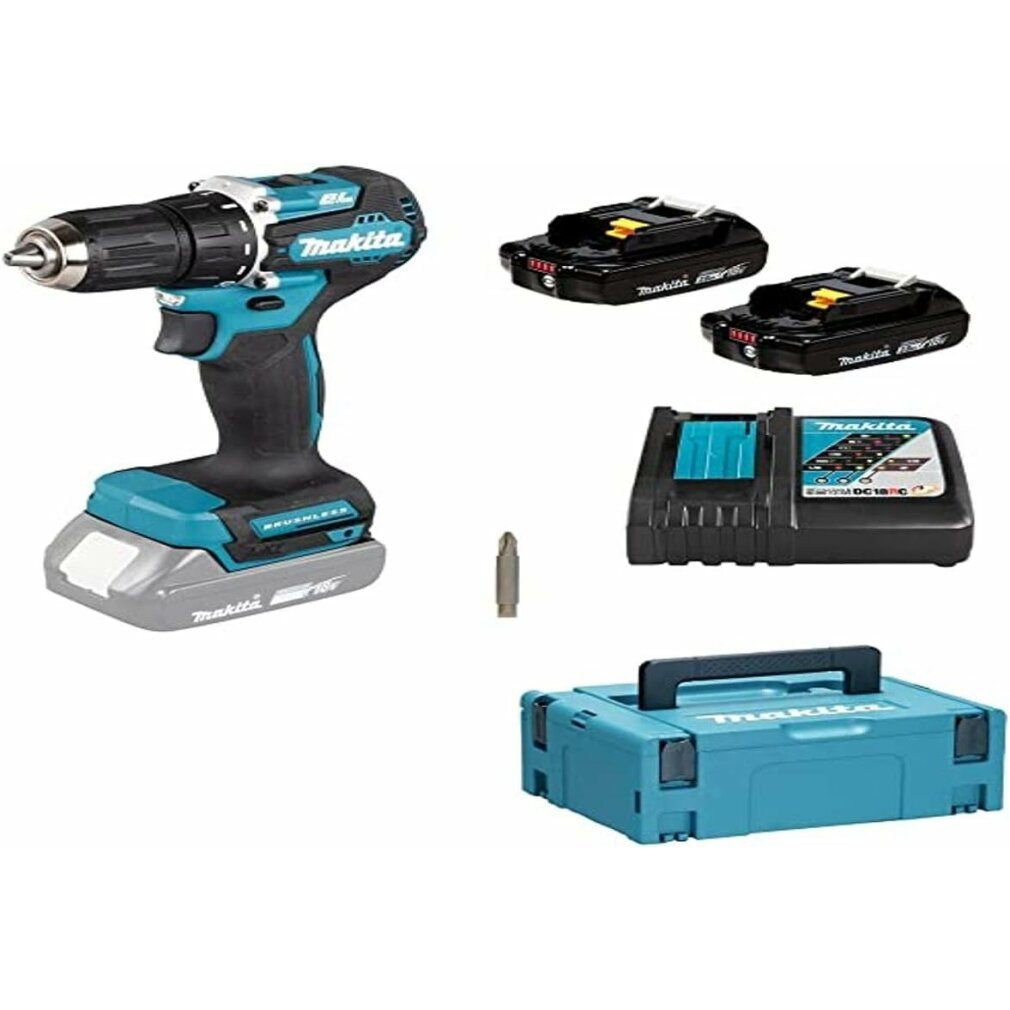 Makita Akku-Bohrschrauber DDF487RAJ, 18Volt (blau/schwarz, 2x Li-Ionen Akku 2,0Ah, MAKPAC)