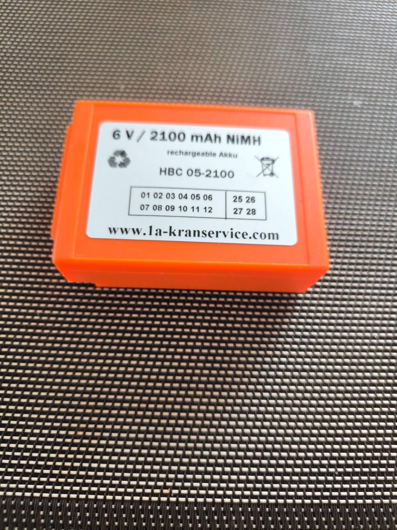 Biete hier zum Kauf: Offered here for sale : Neuer Akku für Funkfernsteuerung HBC Radiomatic New Battery for radio remote control HBC Radiomatic 6 V - 2100 mAh Herstellernummern: BA205000, BA205030, BA206000, BA206030, Putzmeister PM237745002 u.s.w. bestückt mit hochwertigen Qualitätszellen. equippe
