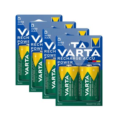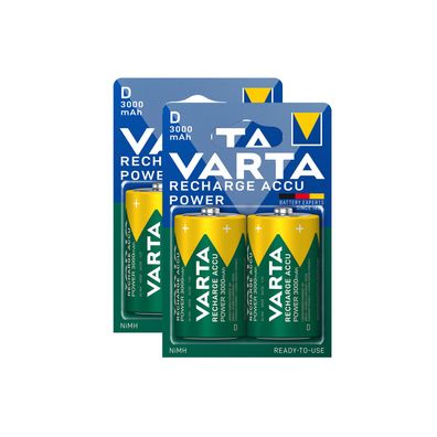 • 4x Varta Akku Mono D HR20 1,2V 3000mAh Rechargeable Accu Typ 56720 2er Blister