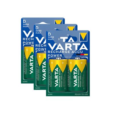 • 6x Varta Akku Mono D HR20 1,2V 3000mAh Rechargeable Accu Typ 56720 2er Blister