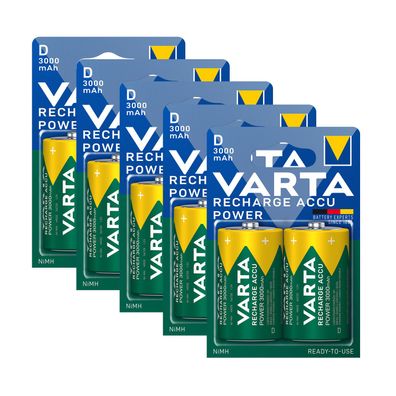 • 5x Varta Akku Mono D HR20 1,2V 3000mAh Rechargeable Accu Typ 56720 2er Blister