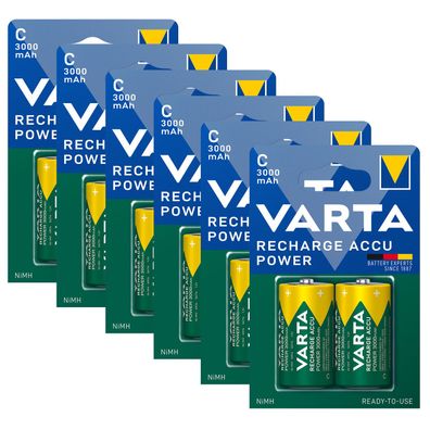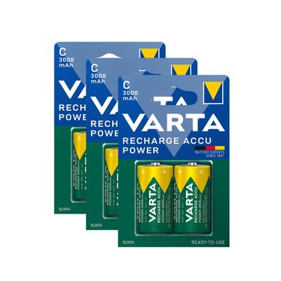 • 6x Varta Akku Baby C HR14 1,2V 3000mAh Rechargeable Accu ReadyToUse Typ 56714