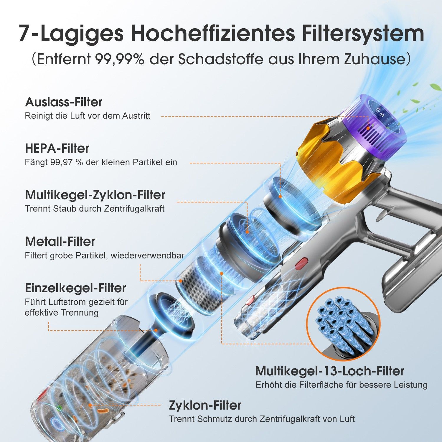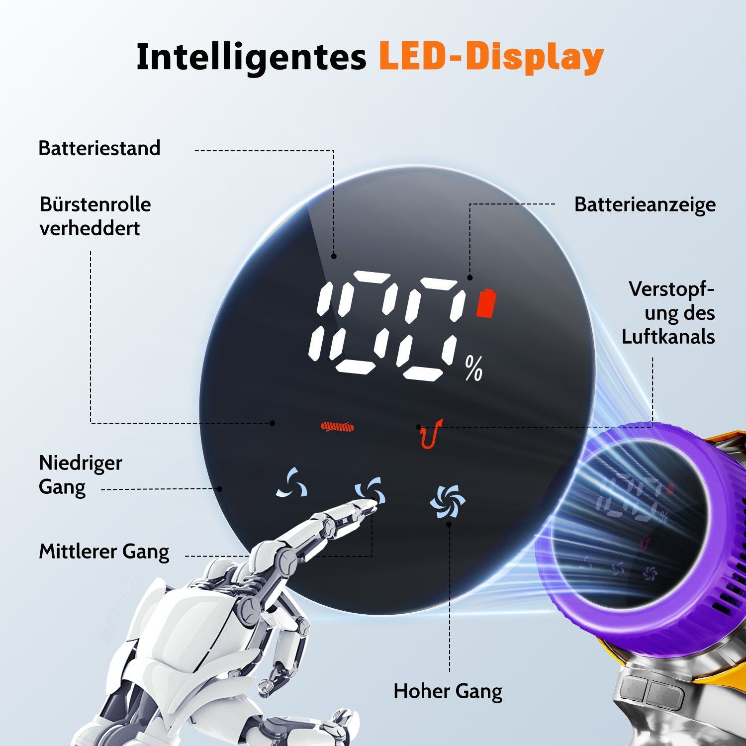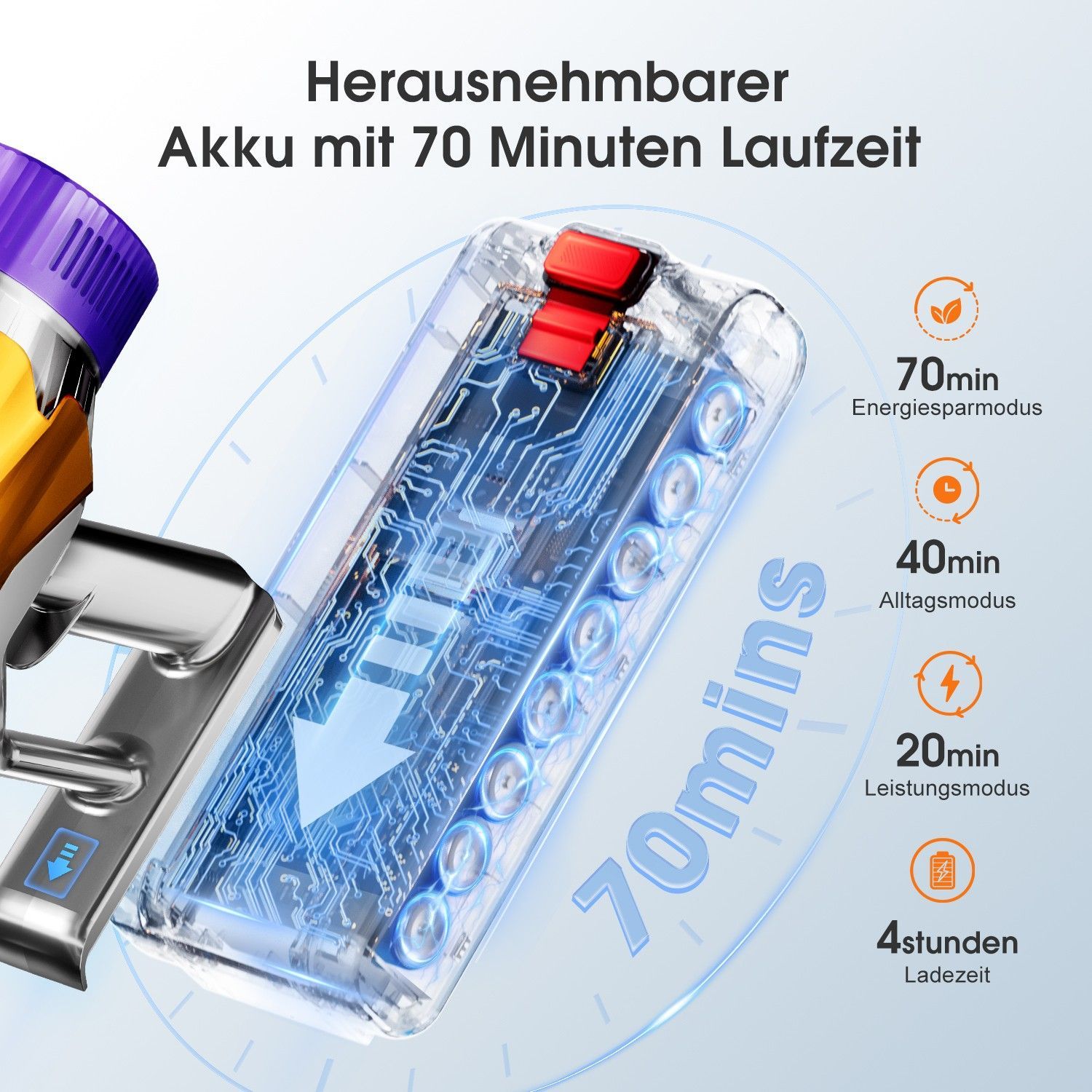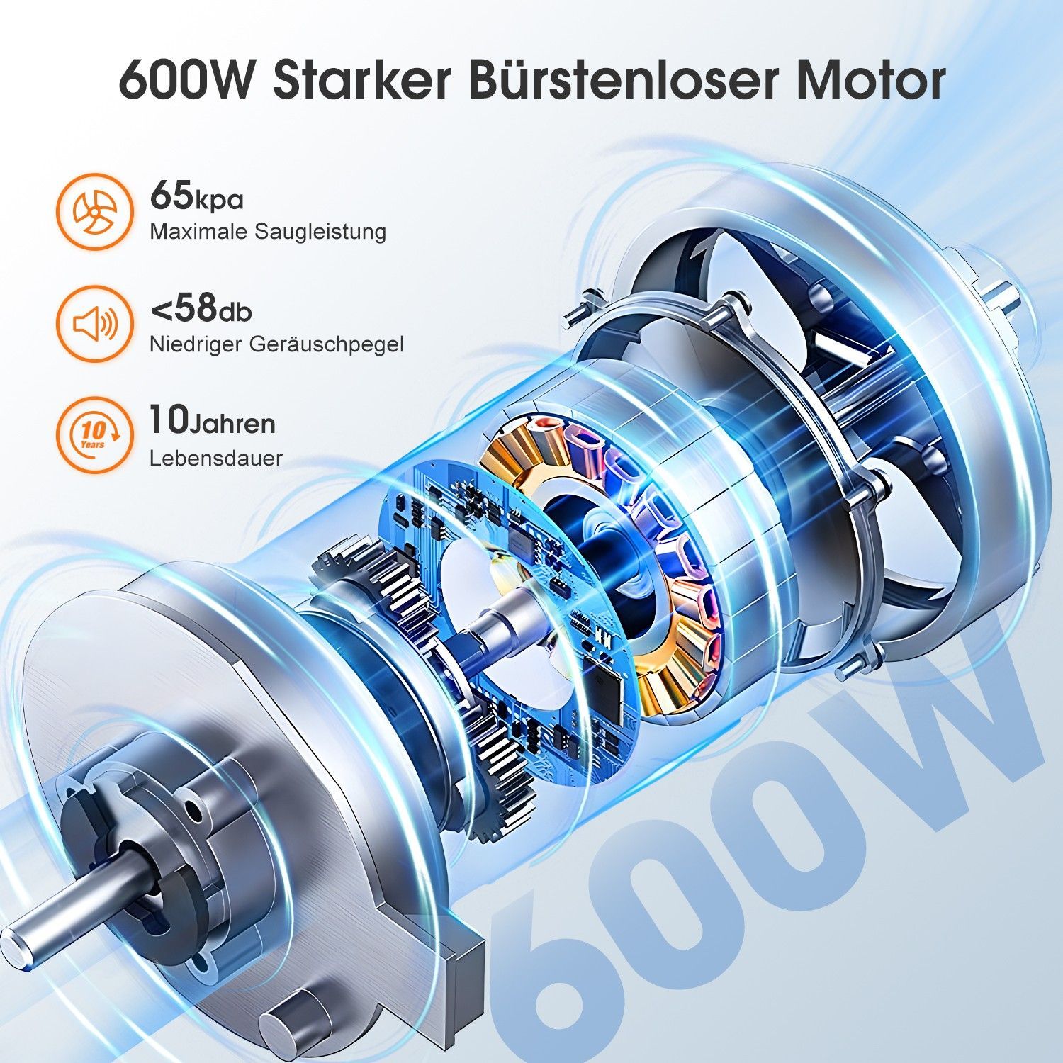 Akku Staubsauger,65000Pa/600W /70 Min Staubsauger Kabellos,1.8L,8 in 1