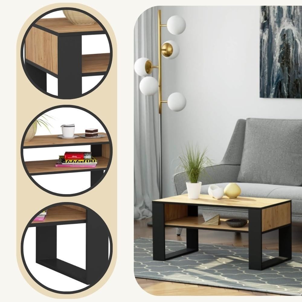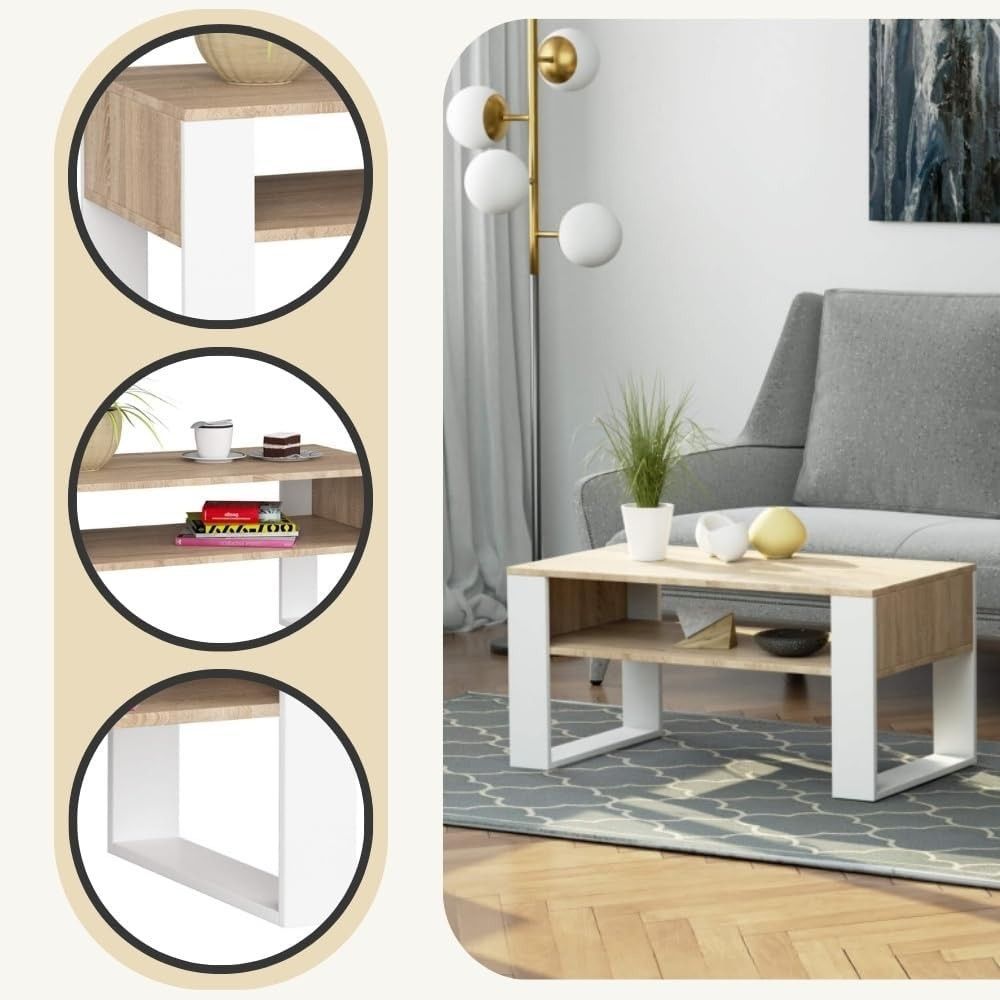 AKORD Couchtisch Holz mit einem Regal 92x45x53cm Für Wohnzimmer Schlafzimmer Schrank