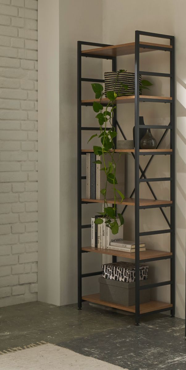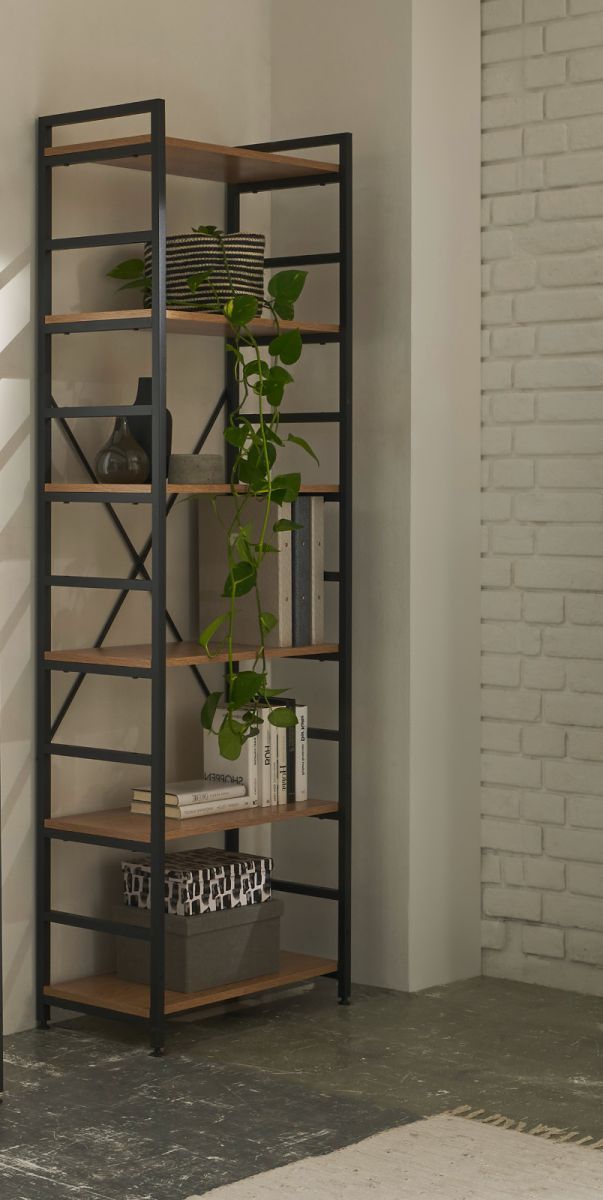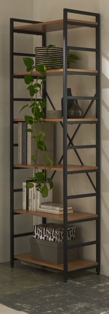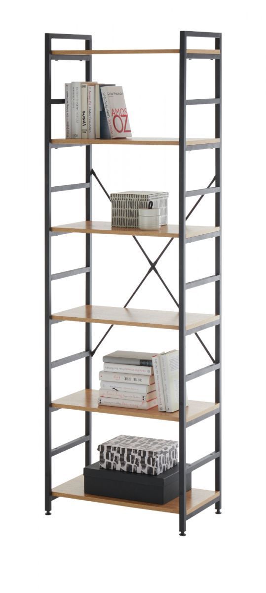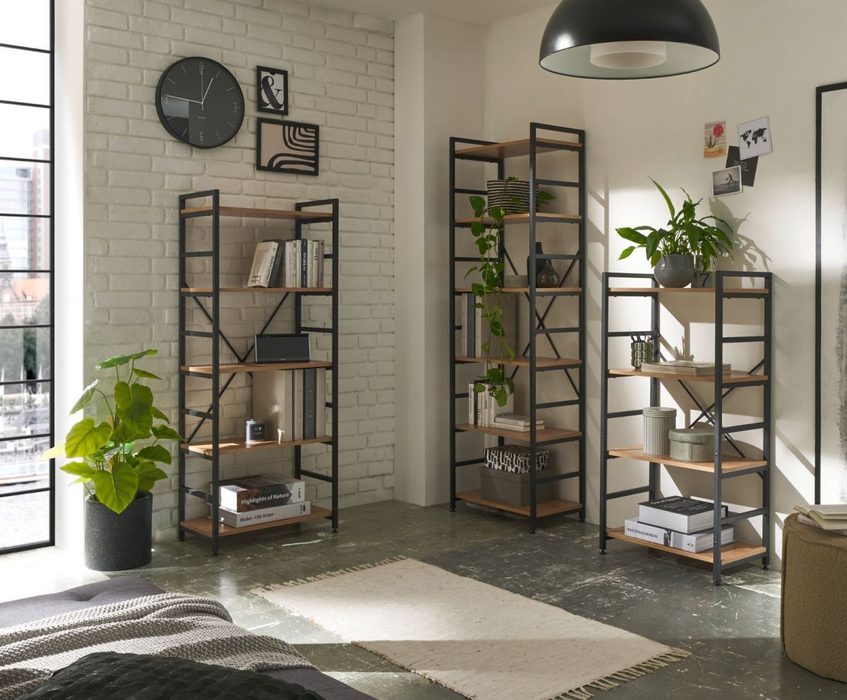 Aktenregal Branca Standregal in Wildeiche schwarz Metall Homeoffice Regal 60 x 184 cm