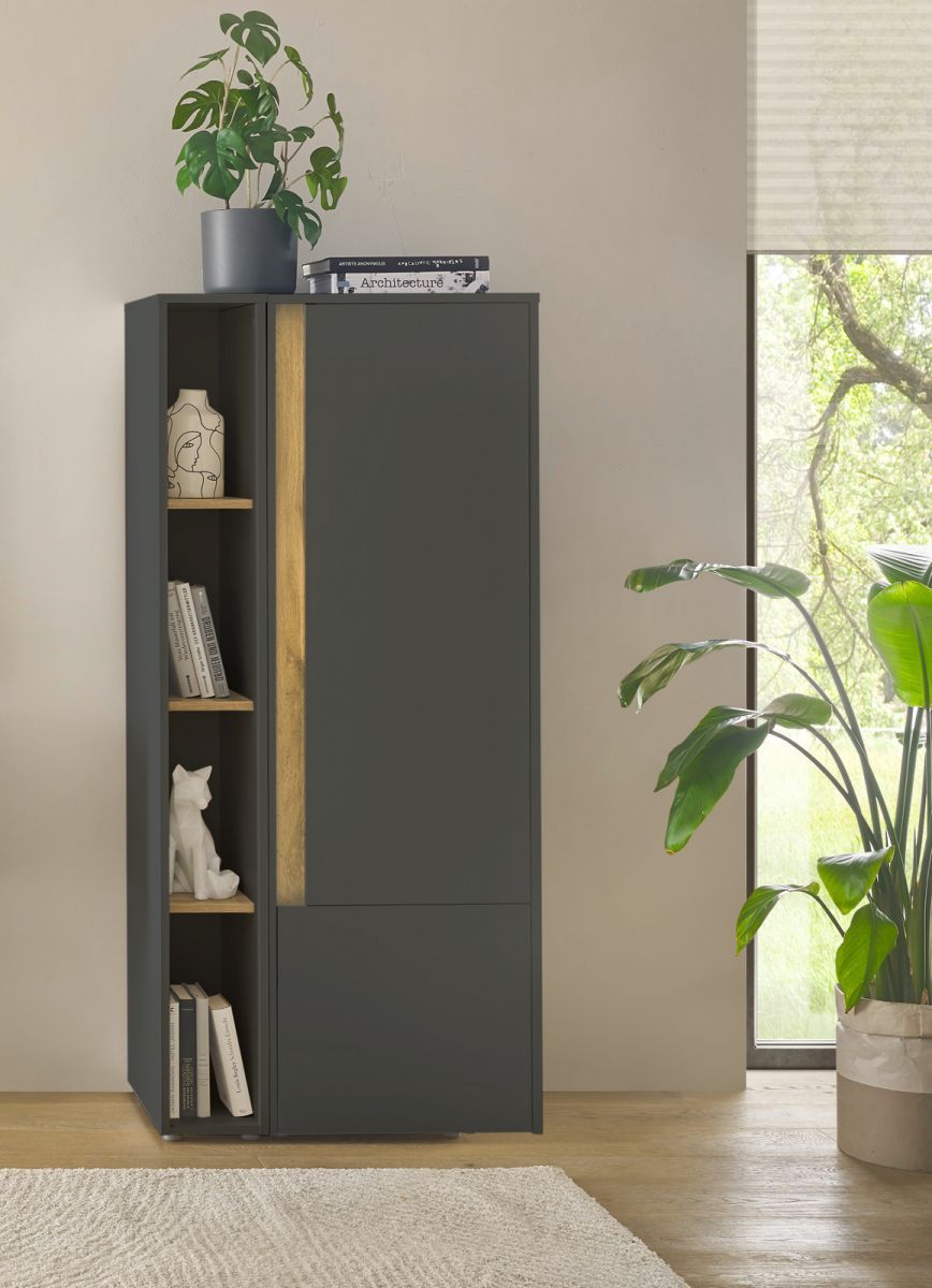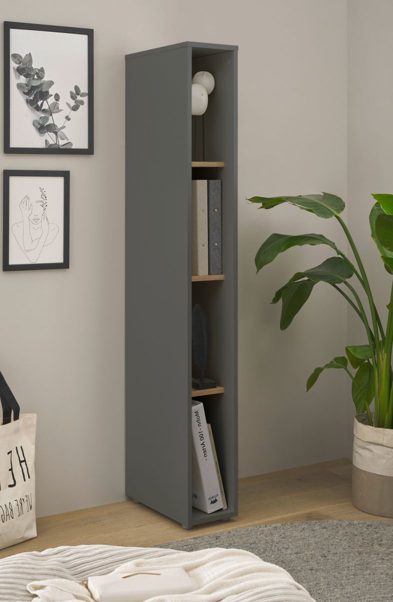 Aktenregal Büro Regal grau und Eiche Standregal für Homeoffice Center 20 x 158 cm