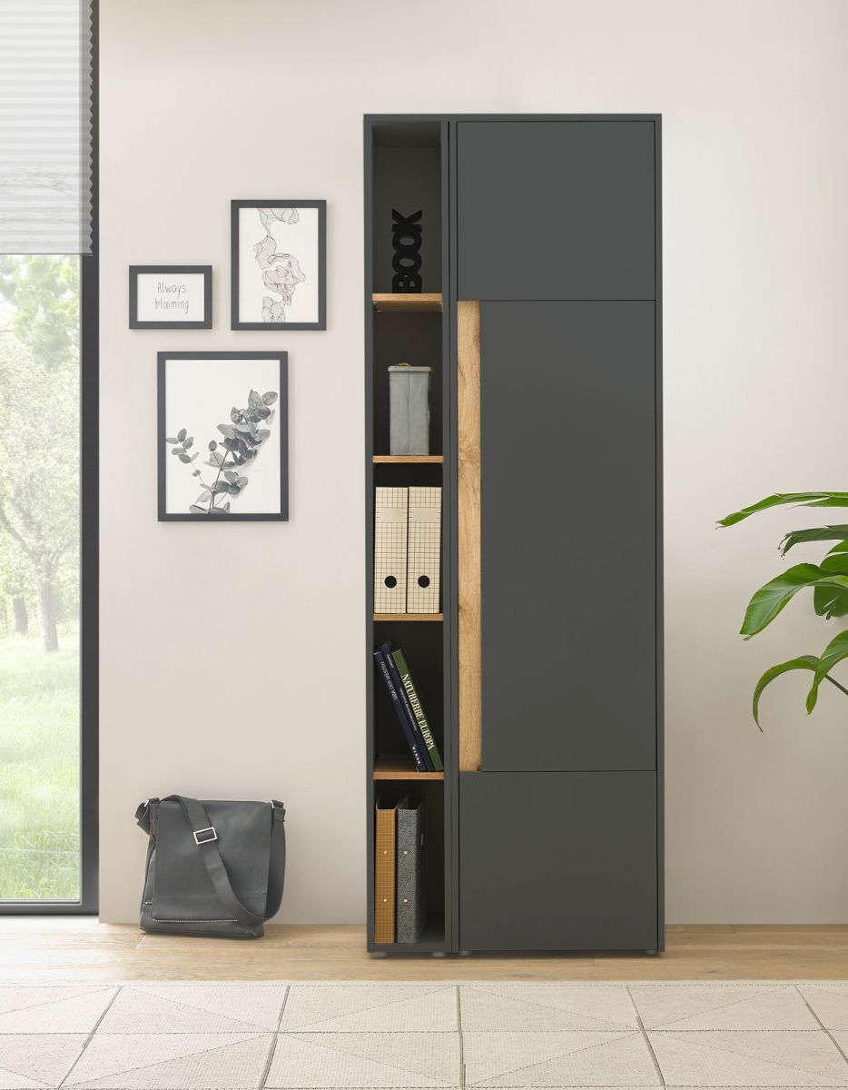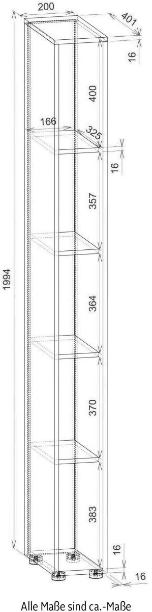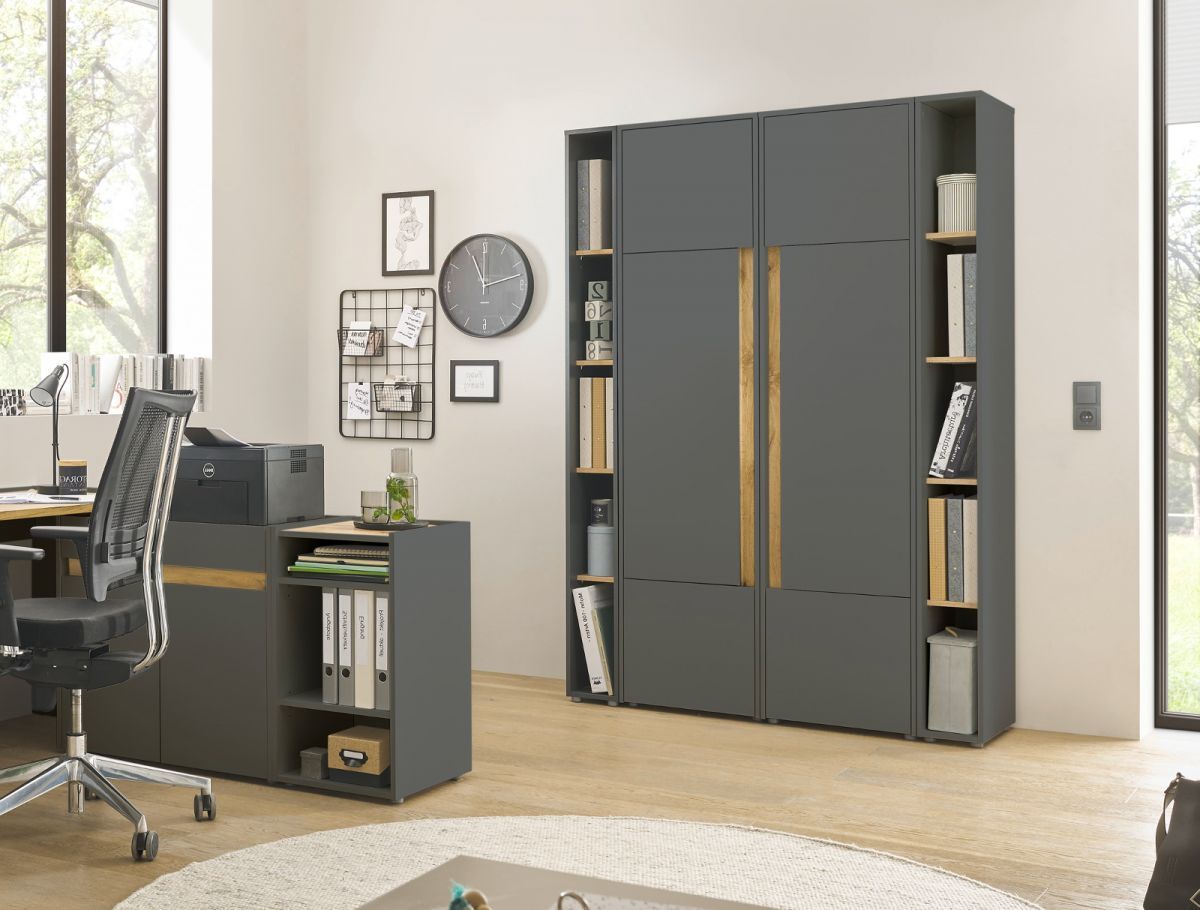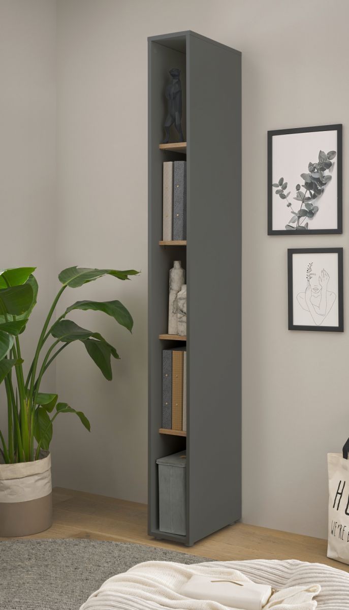 Aktenregal Standregal für Homeoffice Büro Regal grau und Eiche Center 20 x 200 cm