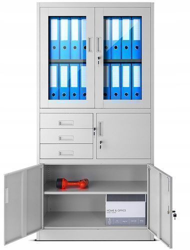 Aktenschrank Büroschrank Metallschrank Tresor Safe Geheimfach 185 x 90 x 40 cm Grau
