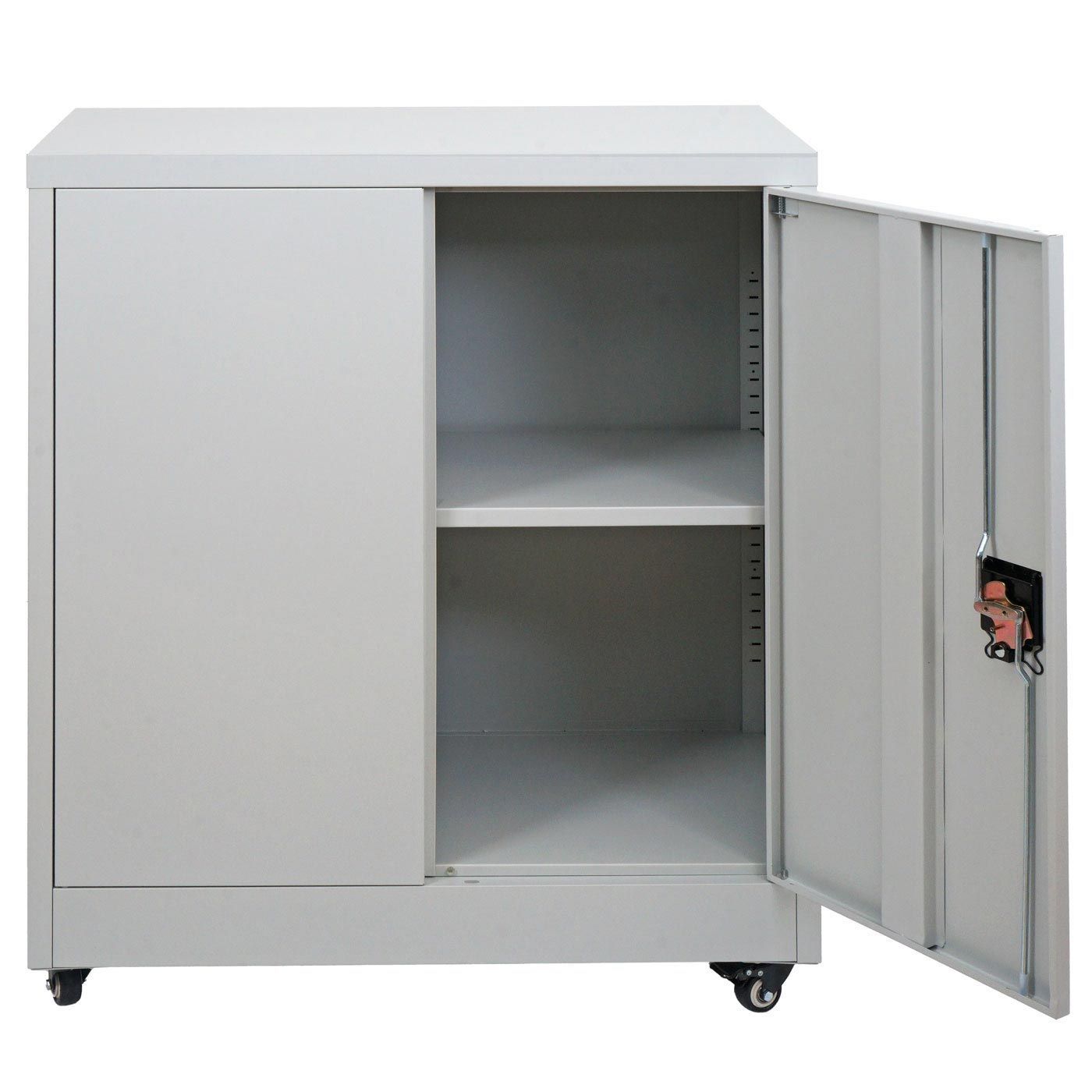 Mendler Aktenschrank HWC-O50, Stahlschrank mit Rollen, 2 Türen abschließbar, Stahl 98x80x40cm
