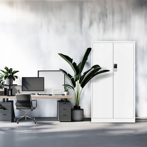 Aktenschrank Metallschrank mit Zahlenschloss Büroschrank 185x90x40 cm Weiß