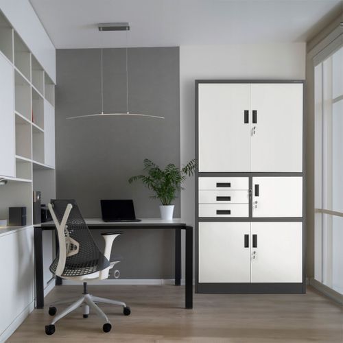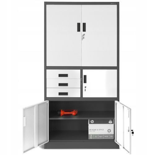 Aktenschrank Metallschrank Tresor Safe Geheimfach 185x90x40 cm anthrazit/weiß
