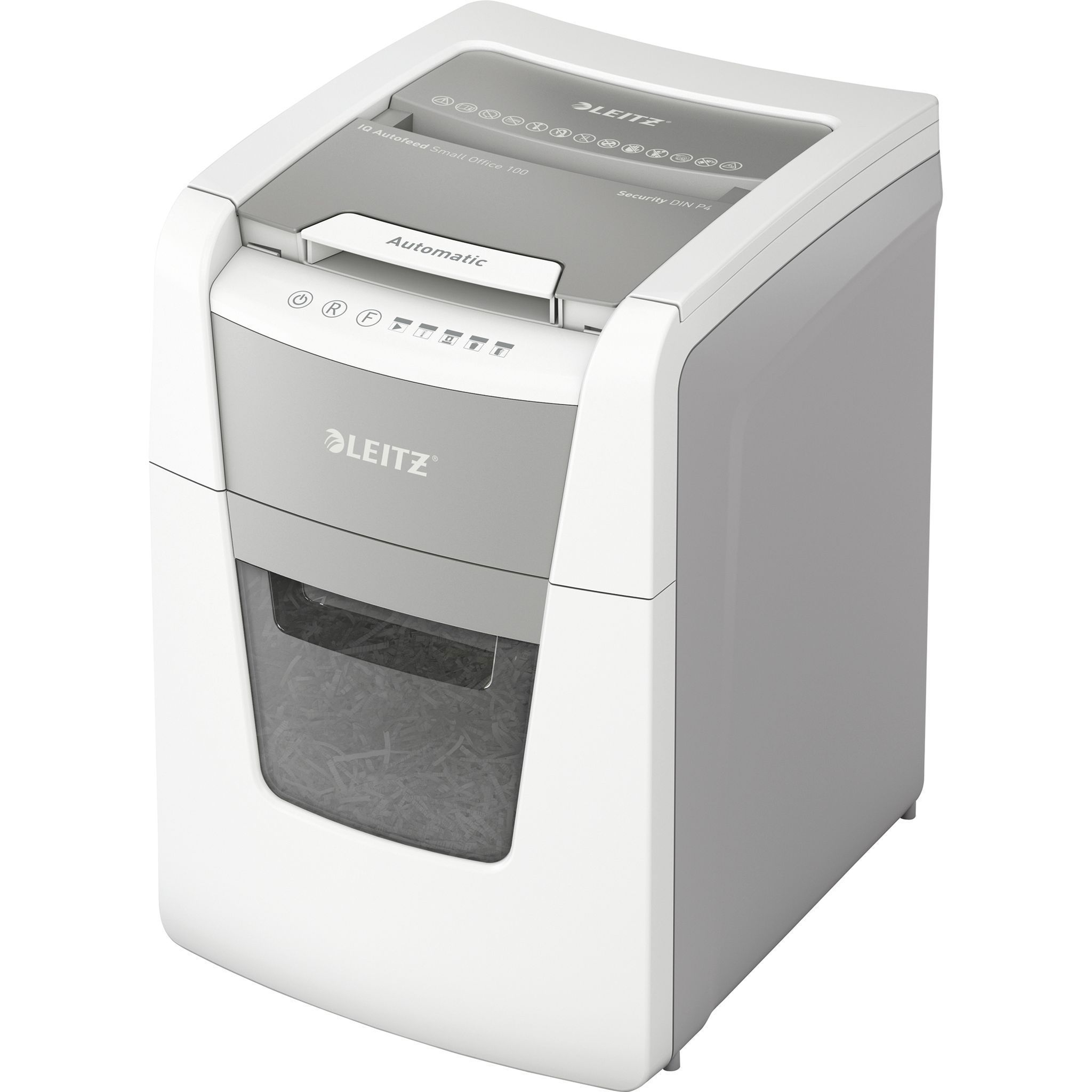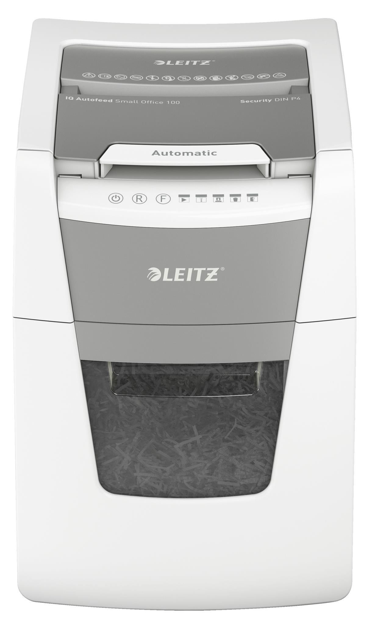 Leitz Aktenvernichter IQ Autofeed Small Office 100 Partikelschnitt P4 weiß