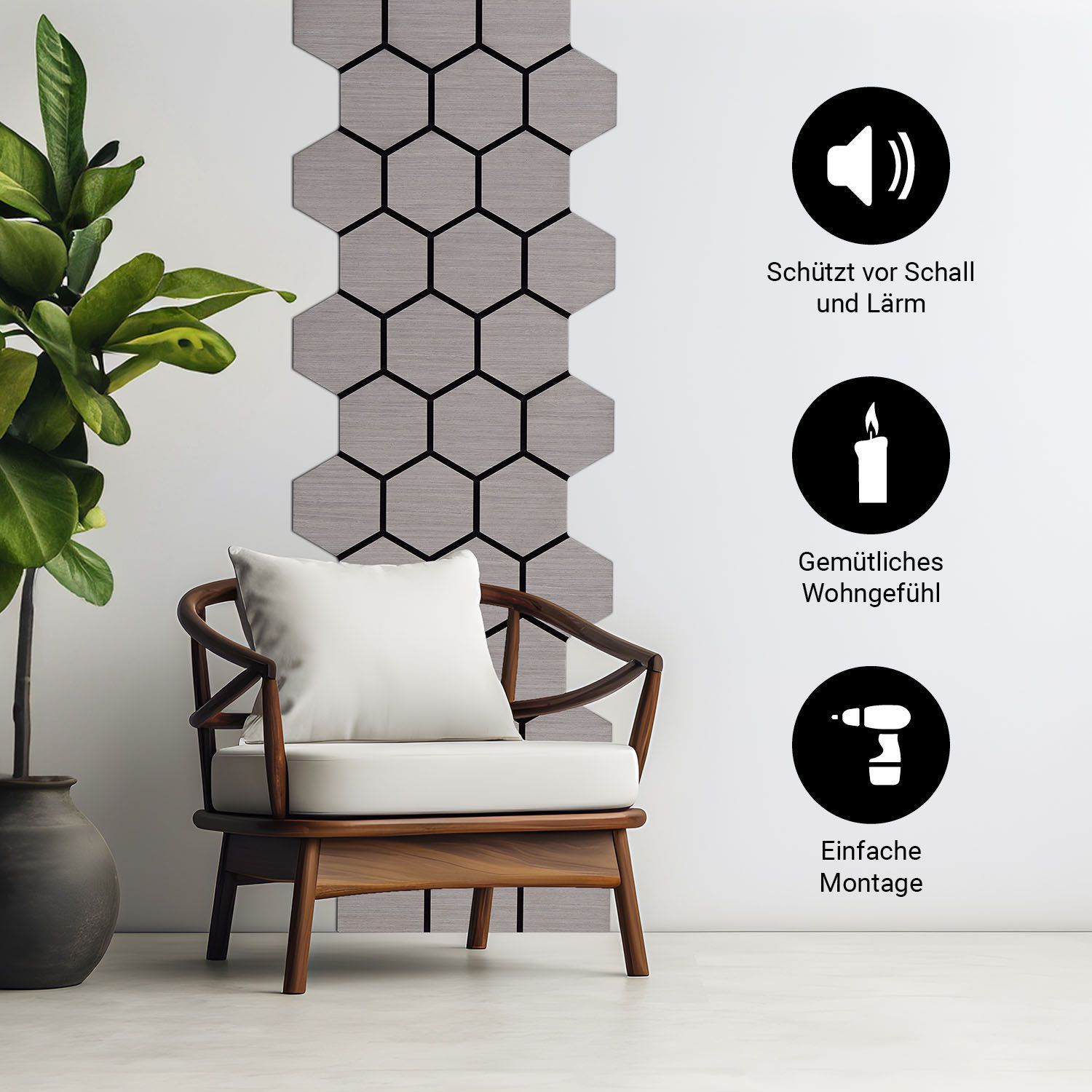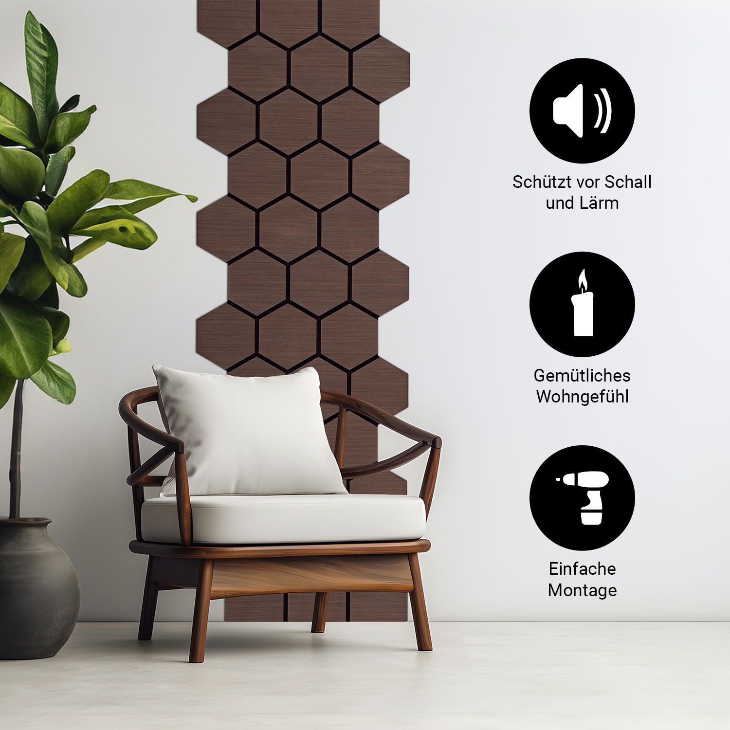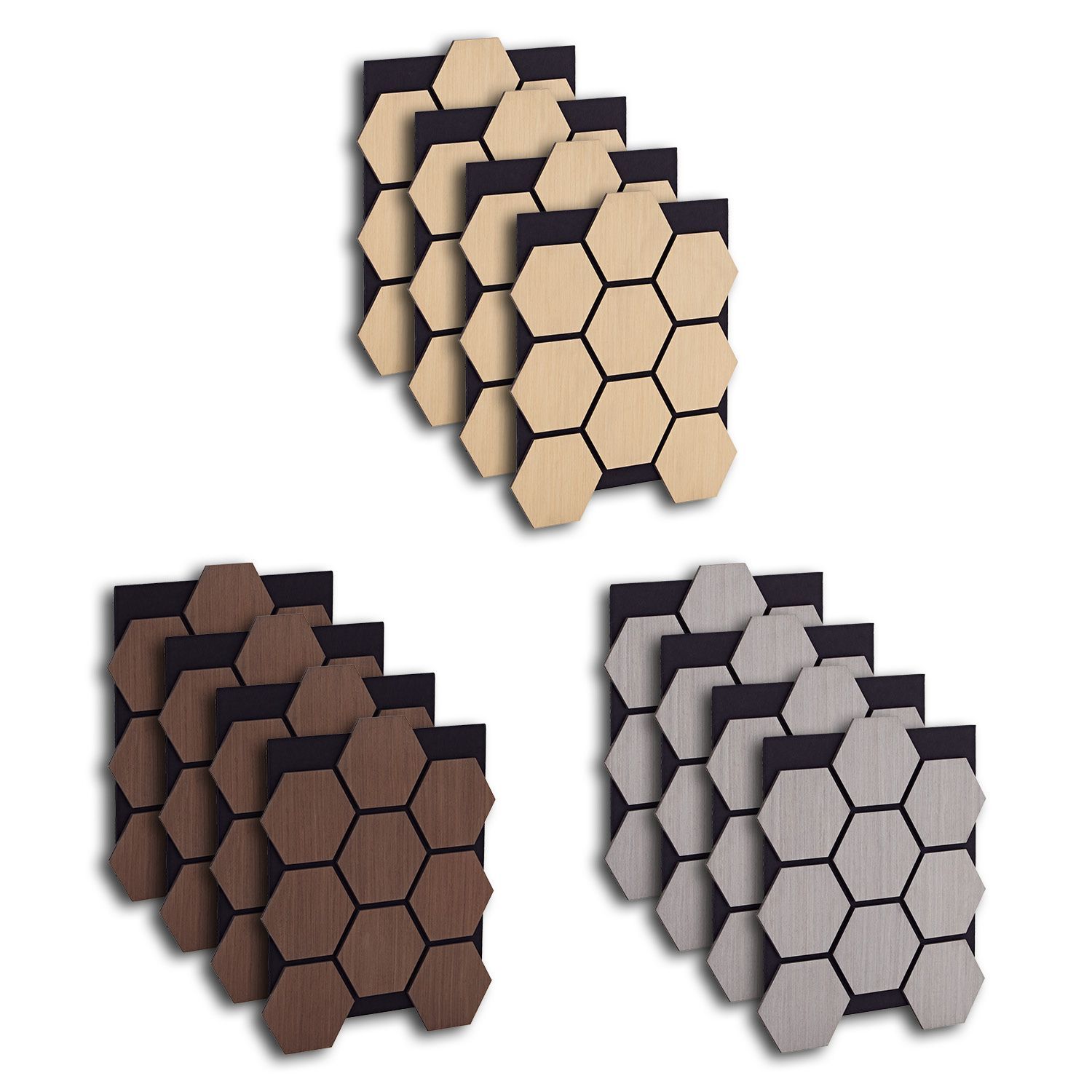 Akustikpaneele Holz 4 oder 8 Wandpaneele Hexagon 76 x 62 cm Paneele Braun Grau