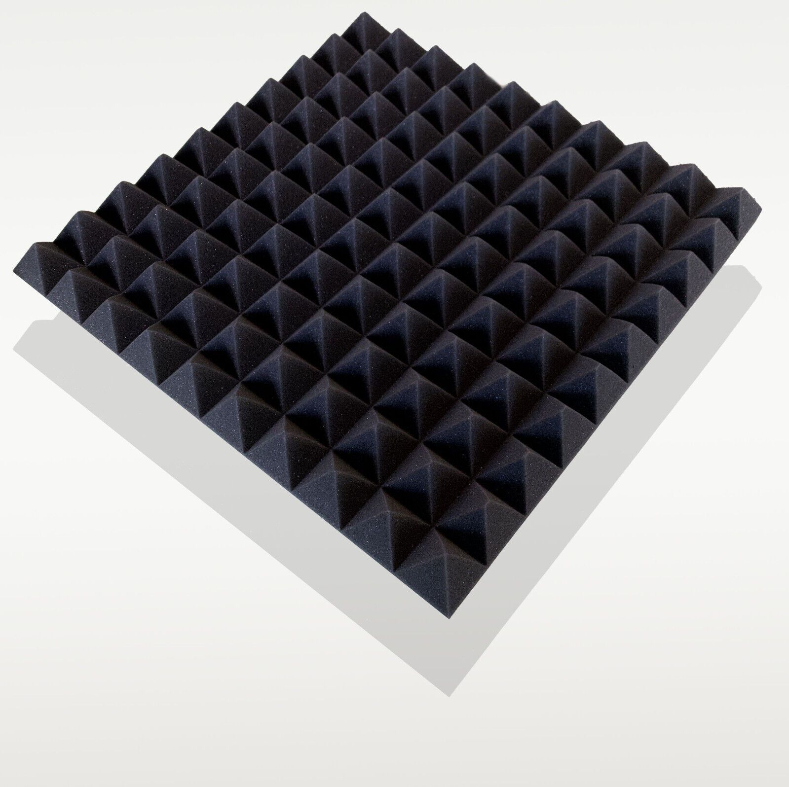 Schallschutz, Technische Akustik und Raumakustik Pyramiden Noppenschaum Königspyramiden Absorber PUR-Kleber Pyramiden-Schaumstoff 50m² Farben: Anthrazit dunkel Grau Maße ca. 50x50x6cm 200 Stk. Normal ohne Brandschutz Das Resultat unseres 50 jährigen Know-how's mit dem Einsatz von Hochleistungspräzis