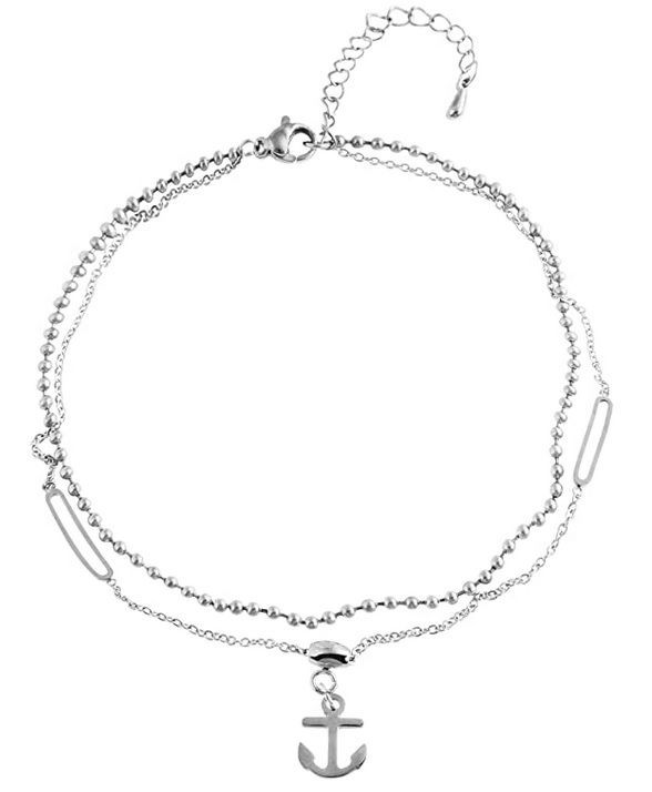 Akzent Edelstahl Fußkettchen silberfarben Ankeranhänger 24 cm