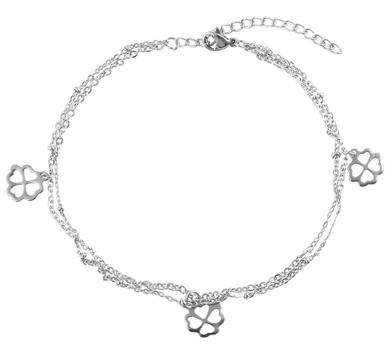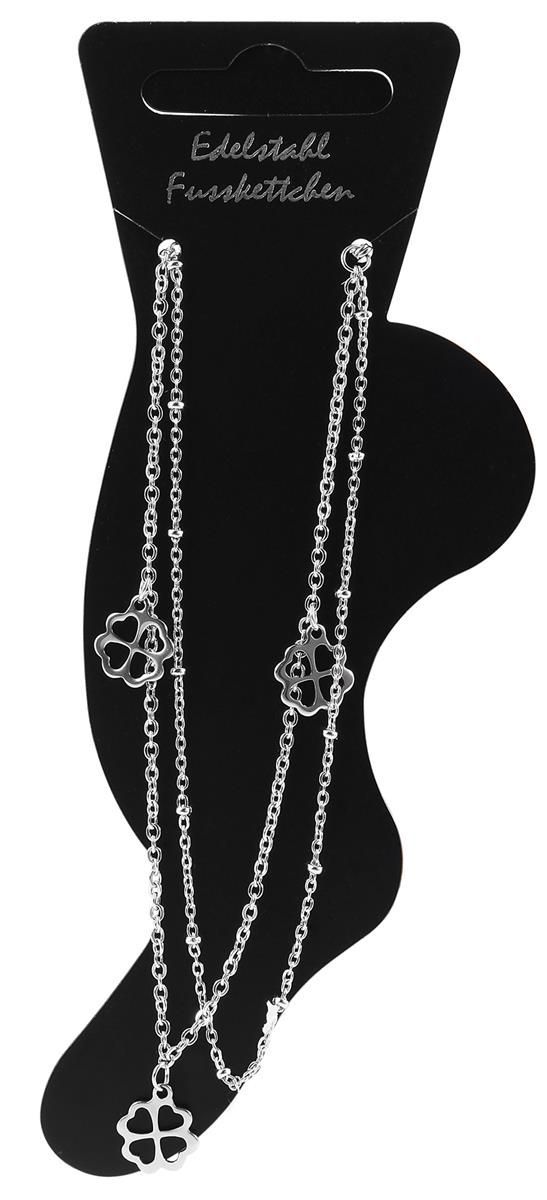 Akzent Edelstahl Fußkette 24cm + 5cm Länge silberfarbig Kleeblattanhänger