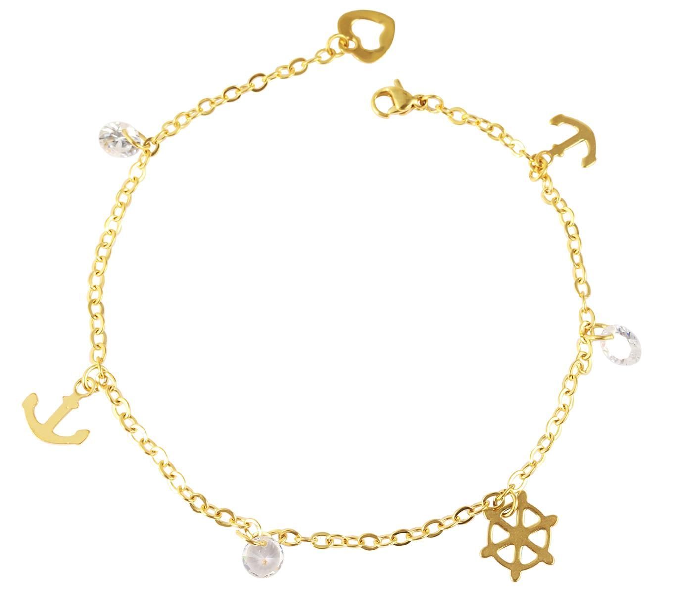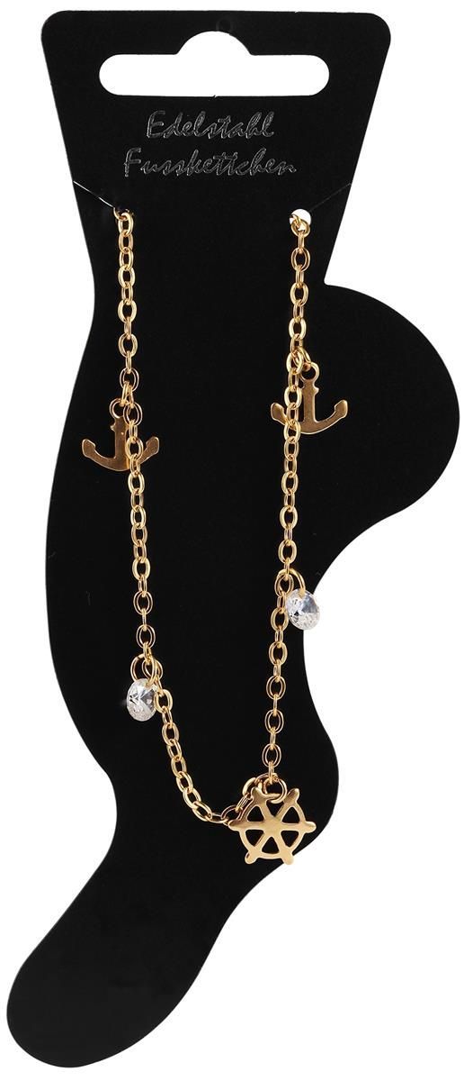 Akzent Edelstahl Fußkette 25cm Länge goldfarben Anker- Steinchenanhänger