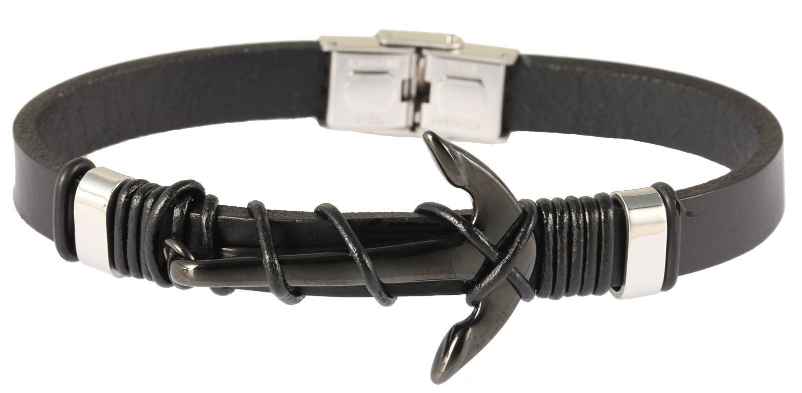 Akzent Lederband schwarz Armband mit Anker 21 cm Band verstellbar