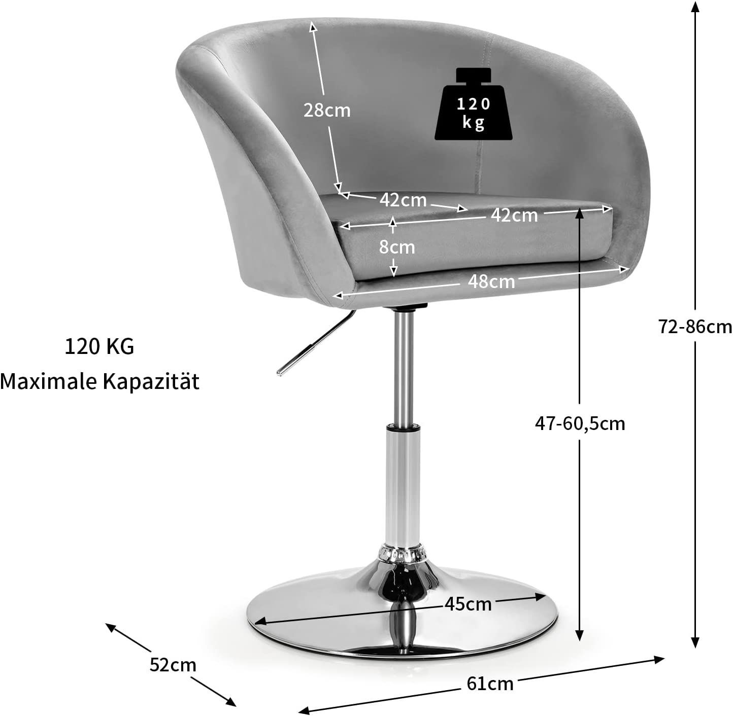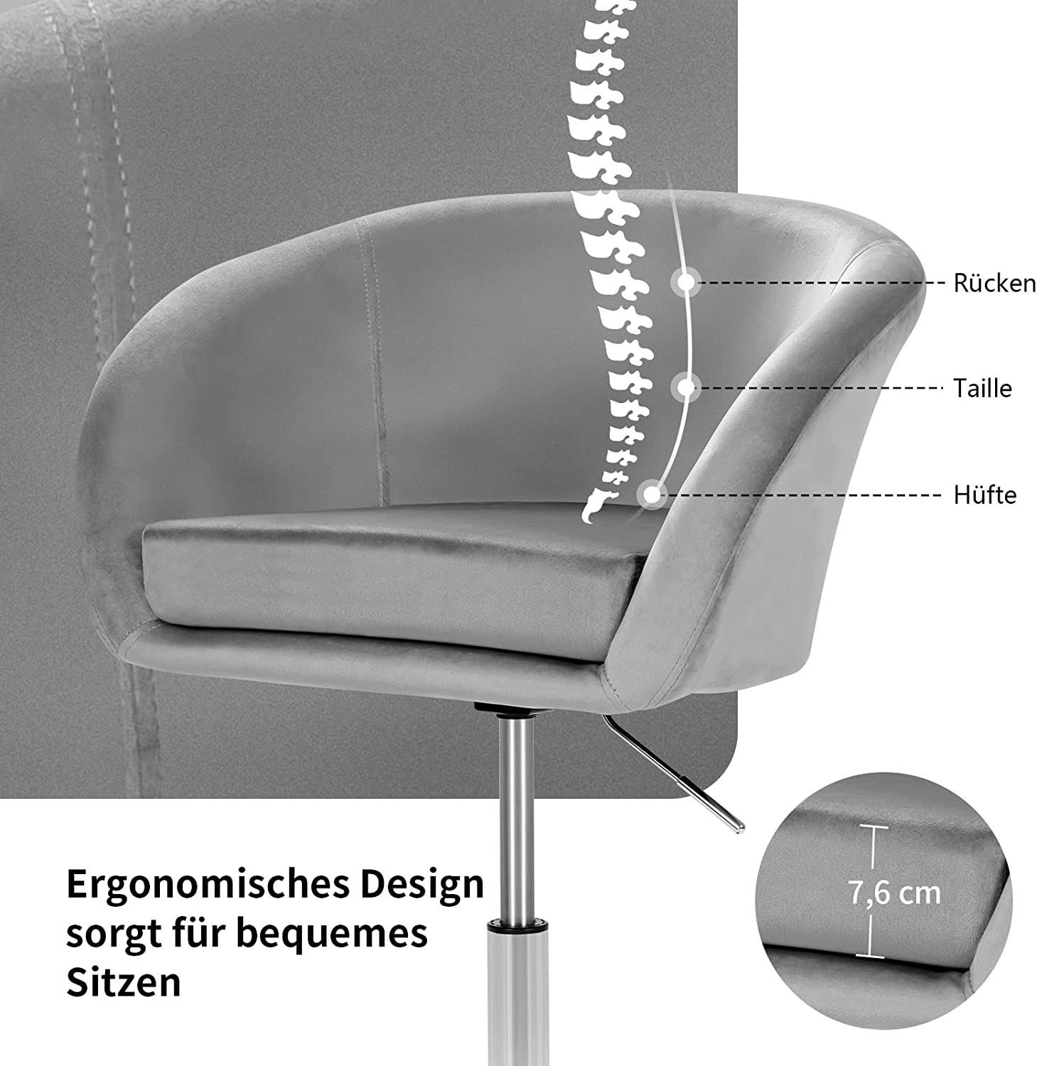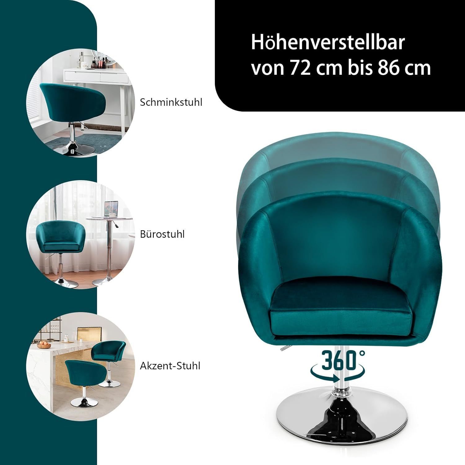 Akzentstuhl höhenverstellbarer, Polsterstuhl 360°drehbar, Esszimmerstuhl bis 120kg