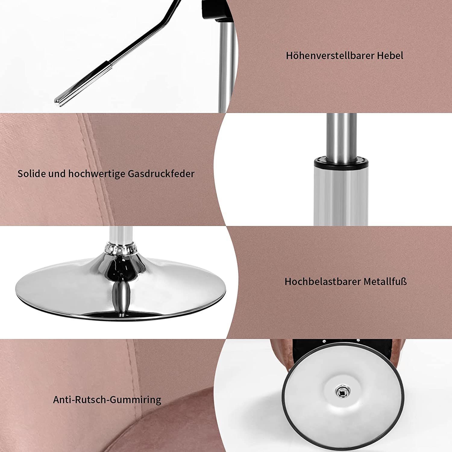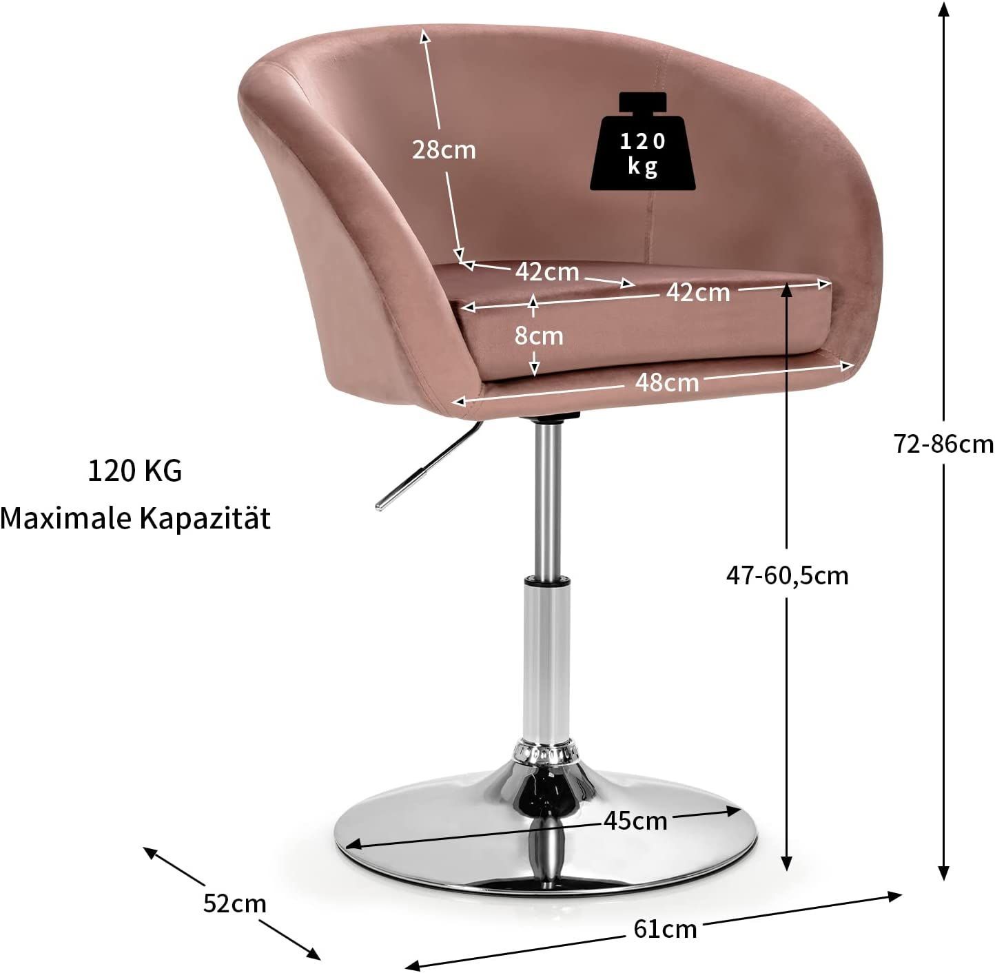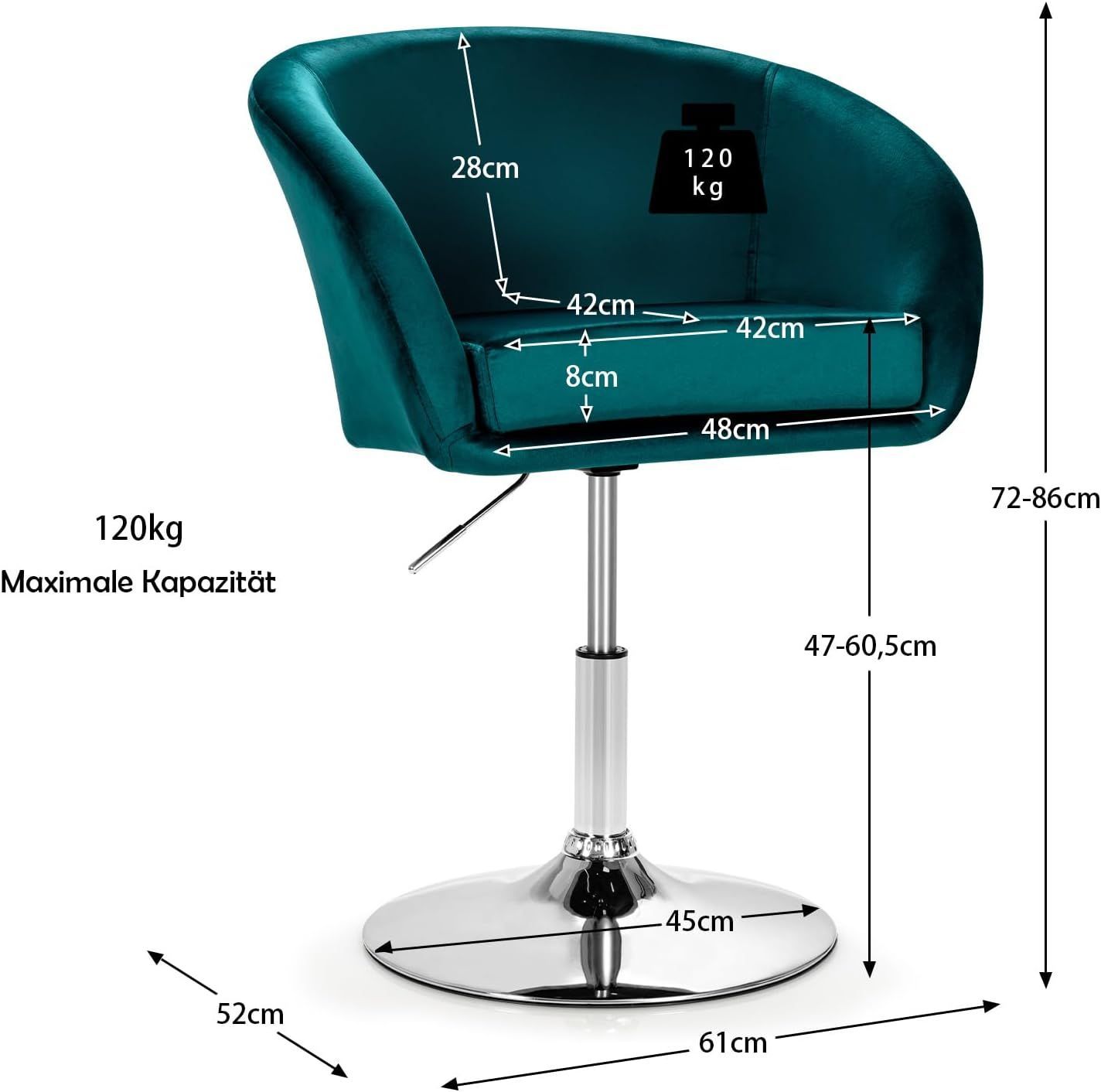 Akzentstuhl höhenverstellbarer, Polsterstuhl 360°drehbar, Esszimmerstuhl bis 120kg