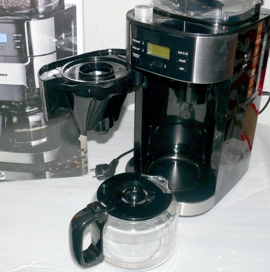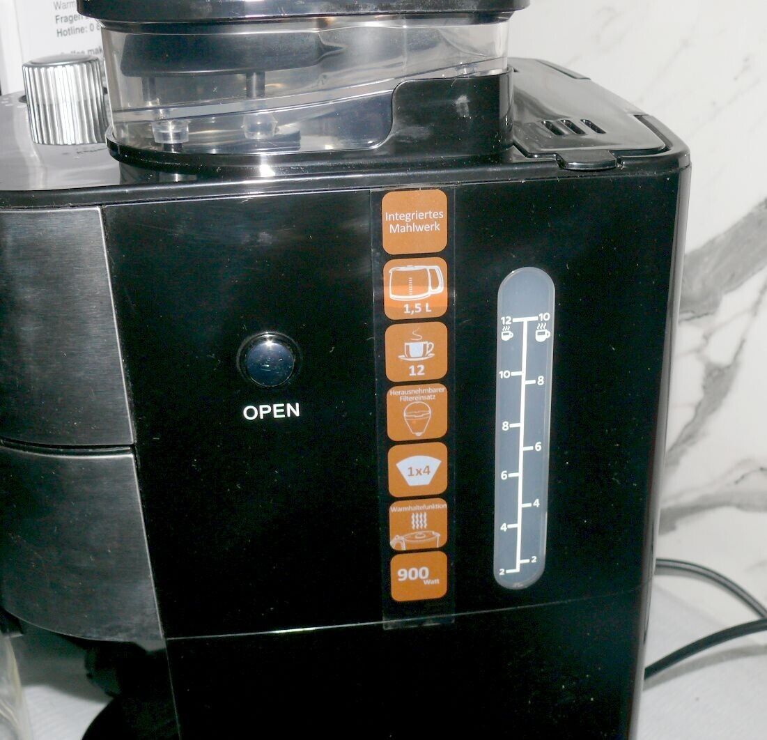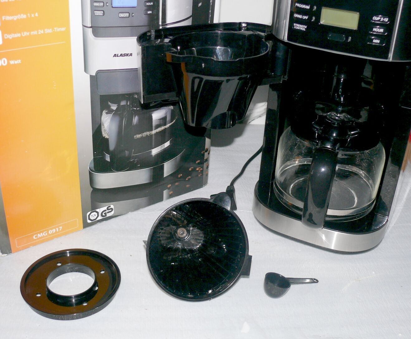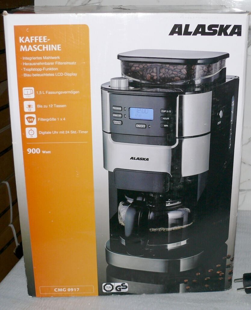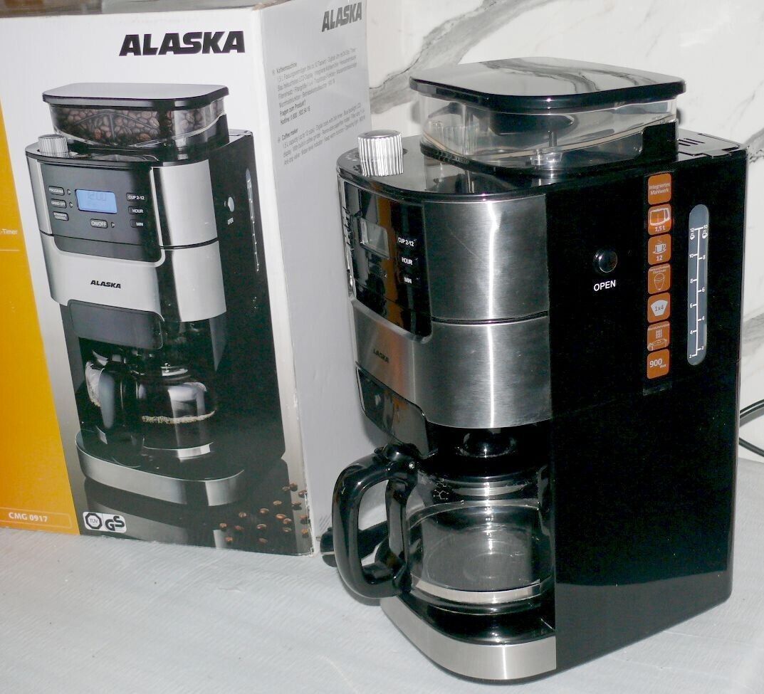 Alaska CMG0917 Kaffeemaschine Mahlwerk Glaskanne 1,5L Bohne 200gr 900W Edelstahl