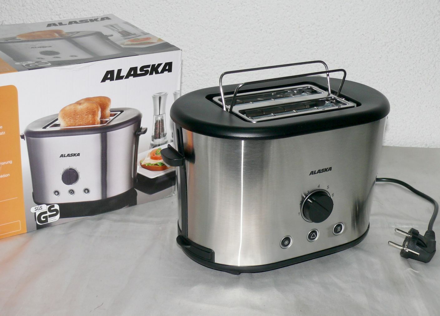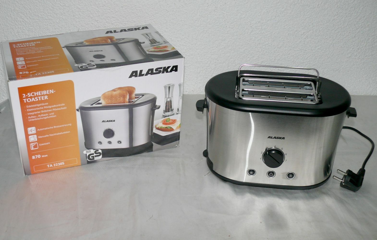 Alaska TA2230S Retro Toaster Doppelschlitz 870W 7 Stufen Brotaufsatz Edelstahl