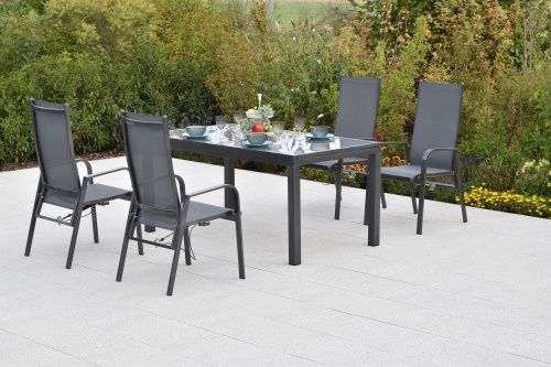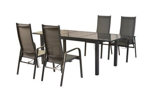 Alassio Gartenmöbel Set 5tlg., 4 Sessel mit Gasdruck, Ausziehtisch 150 (210) x 90 cm,