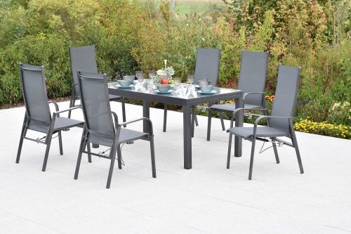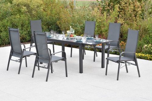 Alassio Gartenmöbel Set 7tlg., 6 Sessel mit Gasdruck, Ausziehtisch 150 (210) x 90 cm,